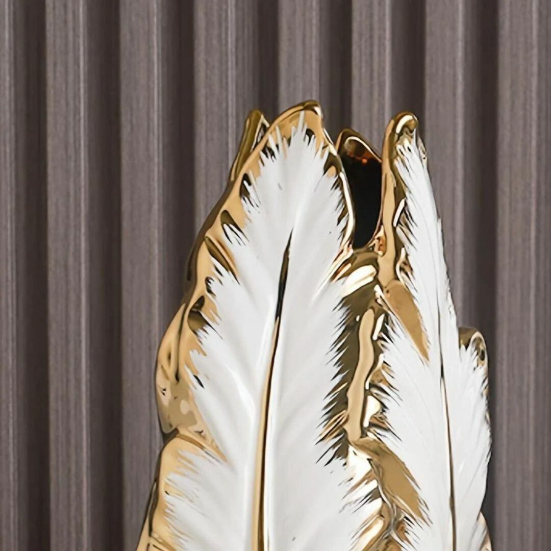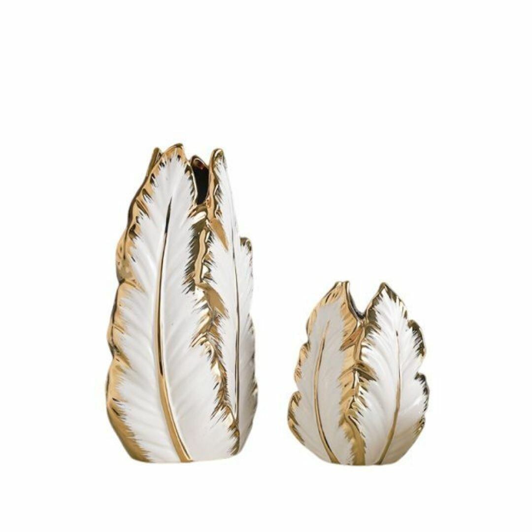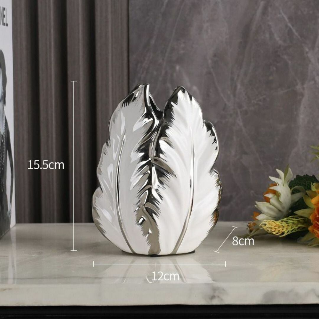 花瓶 ゴージャス おしゃれ 3枚の葉っぱに囲まれたデザイン 芸術 モダン 電気セラミック 不耐水 リビング 玄関 寝室 インテリア 3つのバリエーション ホワイトゴールド シルバー ホワイトシルバー 小サイズ