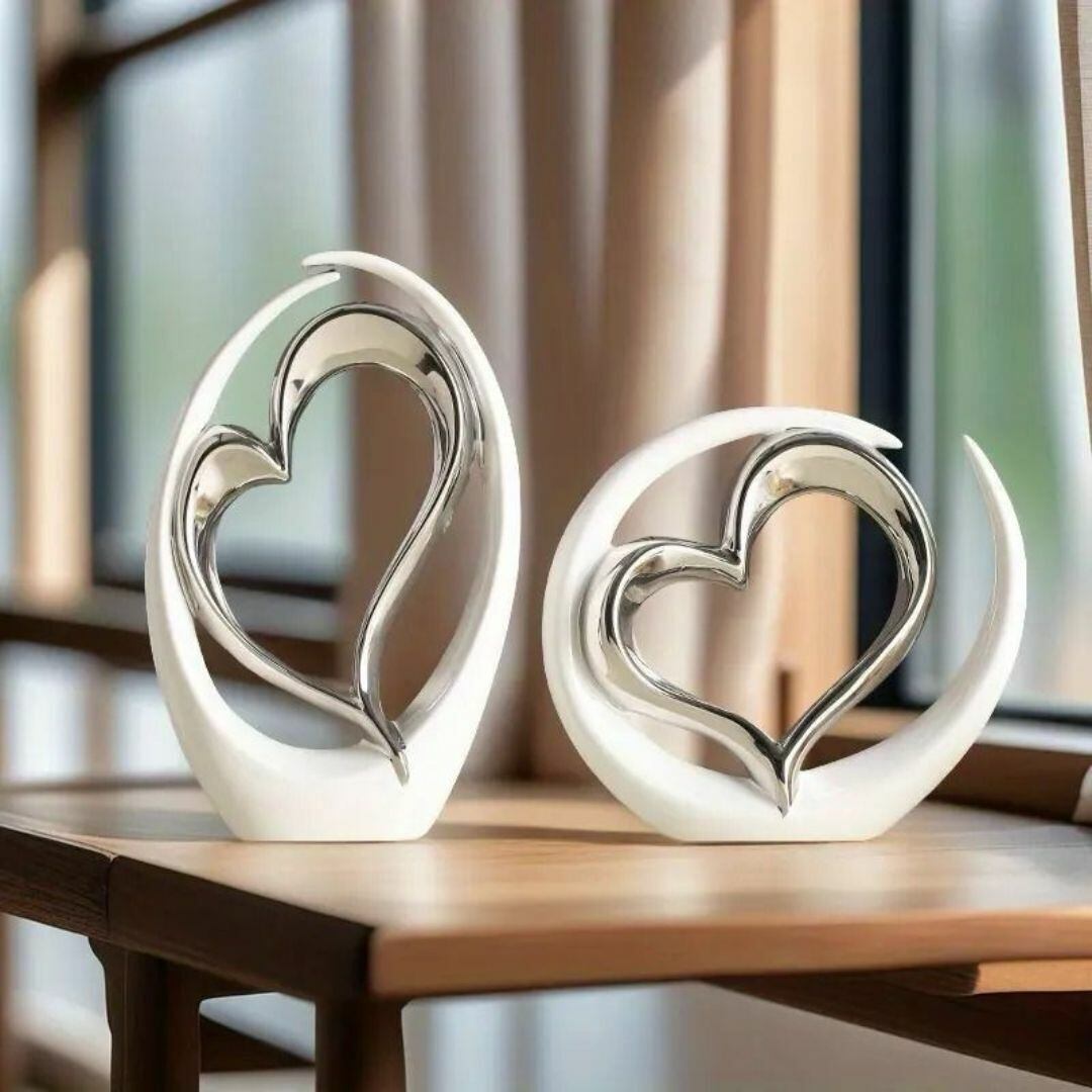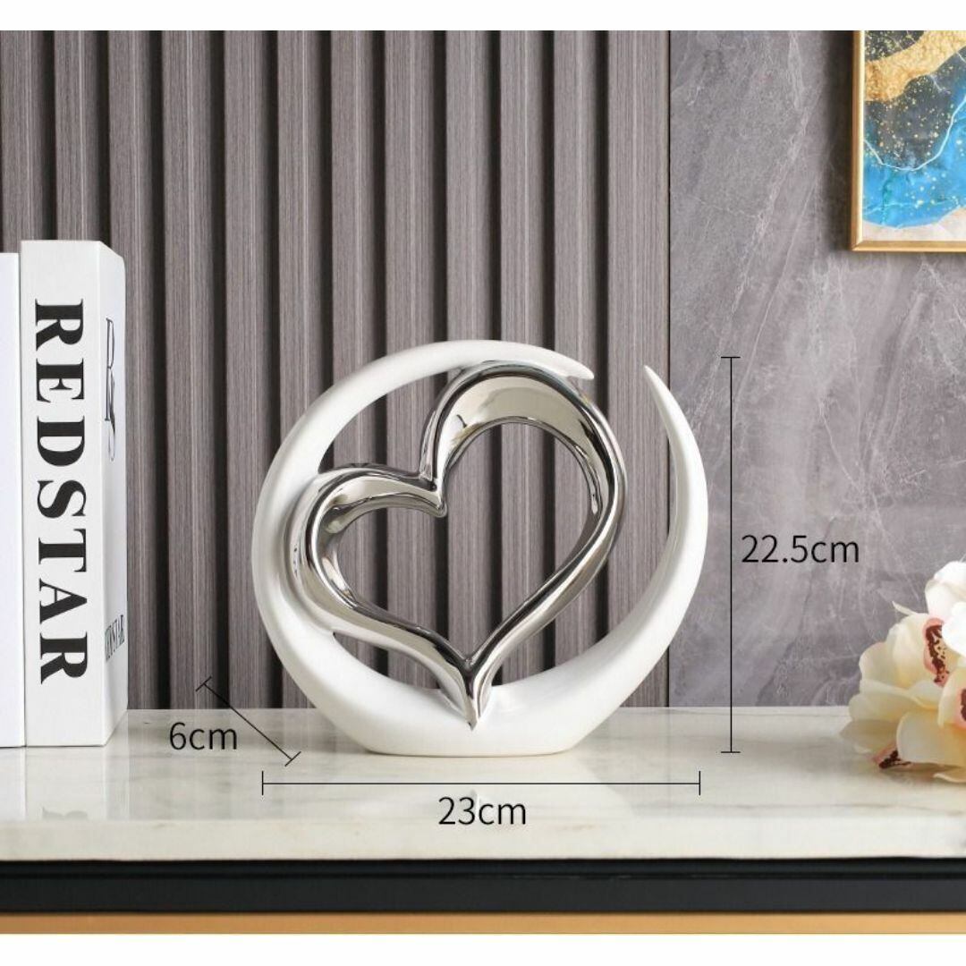 ホワイトベースの落ち着いた質感に、内側にあしらわれたハートが印象的なセラミック製オブジェ。シルバーまたはゴールドのアクセントが上品な輝きを添え、モダンで洗練された空間を演出します。リビングや玄関などの屋内インテリアにぴったりで、愛や調和の象徴として贈り物にもおすすめ。優雅でやさしい雰囲気が空間に融和をもたらします。