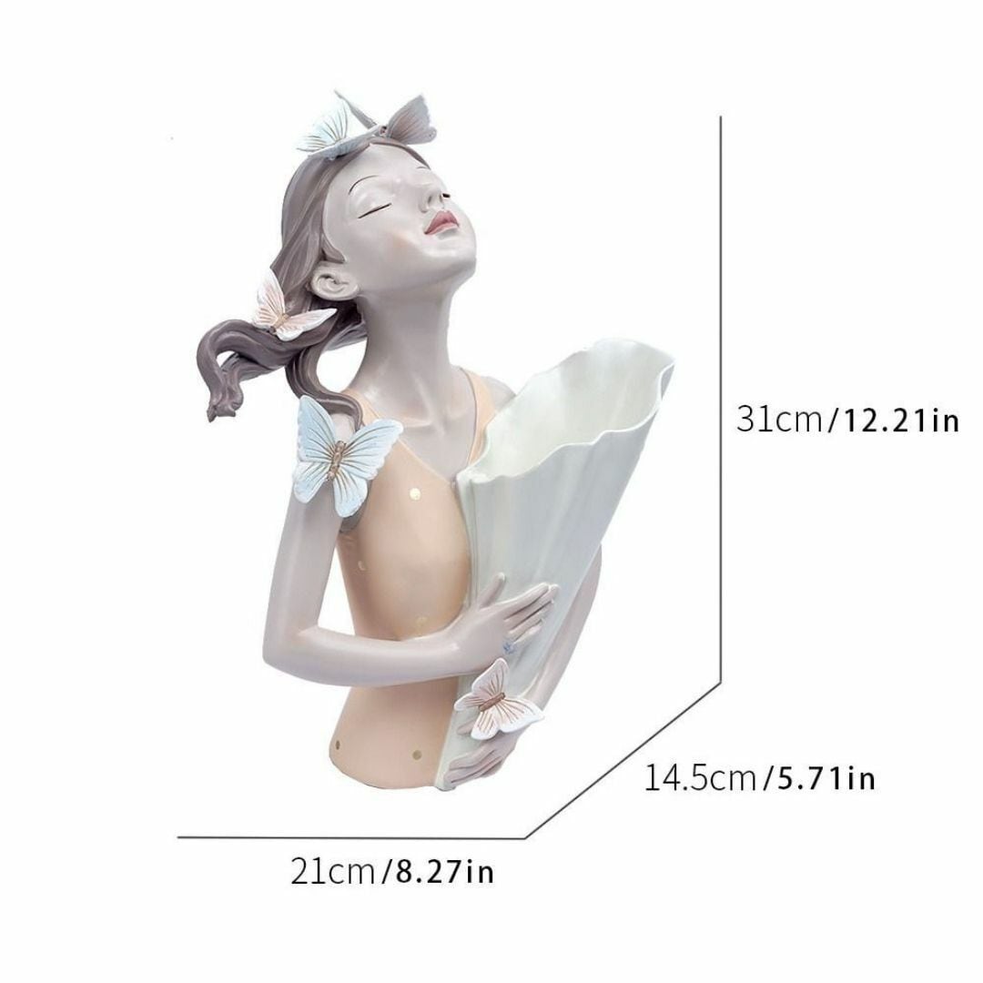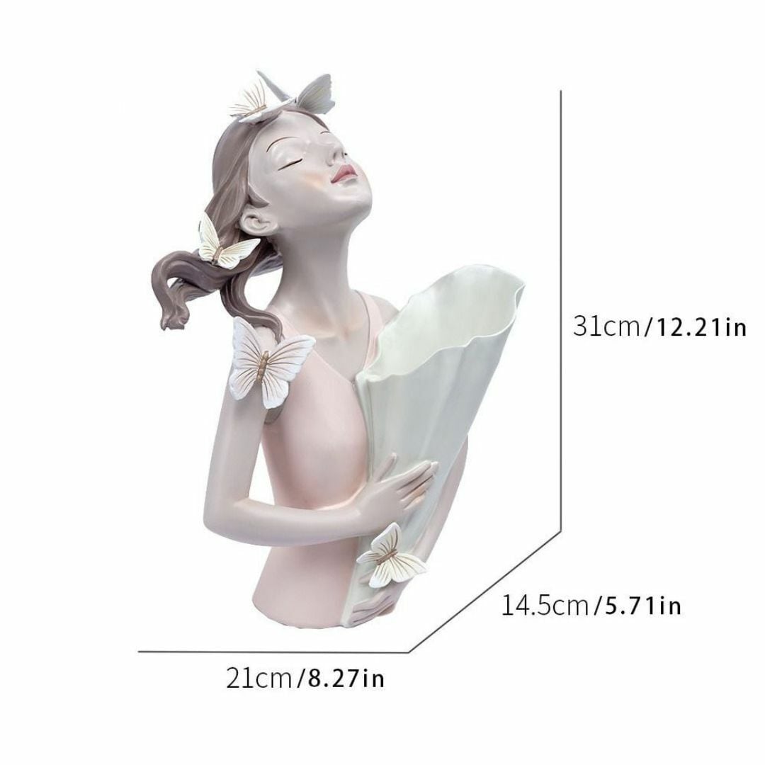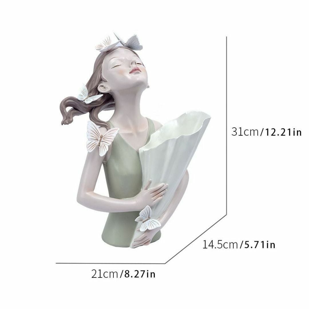 置物 オブジェ 花差し かわいい おしゃれ 花束を持った女の子 カラーバリエーション ホワイト オレンジ ブルー グリーン グレー ピンク 樹脂 インテリア 繊細なつくり リビング 玄関 手作り