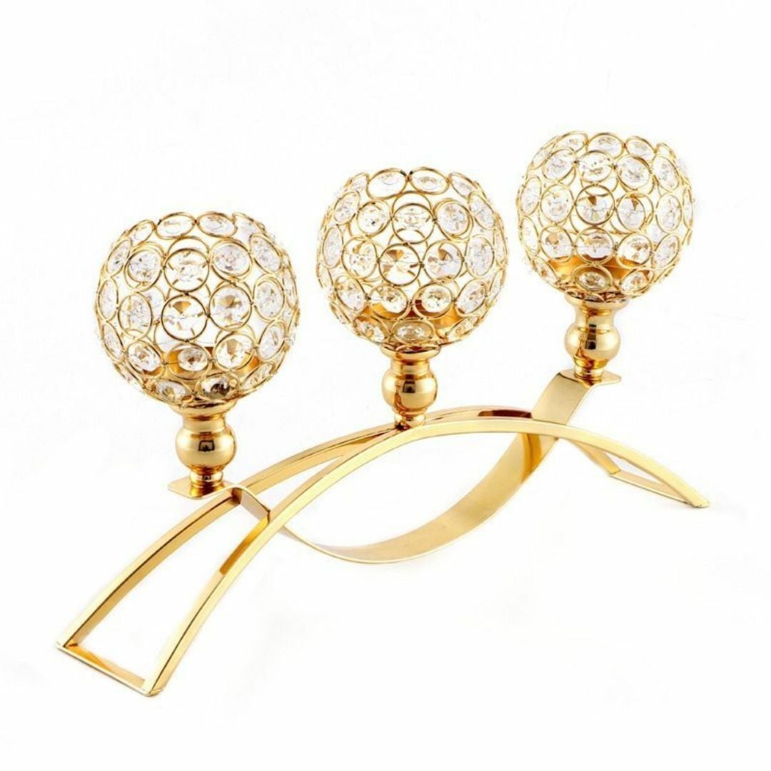 小さな円とクリスタルをあしらった繊細なデザインが魅力の3連キャンドルホルダー。花差しや小物入れとしても使える多機能な置物で、テーブル装飾やお祝い、記念日など特別なシーンを華やかに演出します。ロマンチックで上品なゴールドとシルバーのカラーバリエーションがあり、リビングや玄関に高級感を添えるインテリアアイテム。ギフトやプレゼントにも最適です。