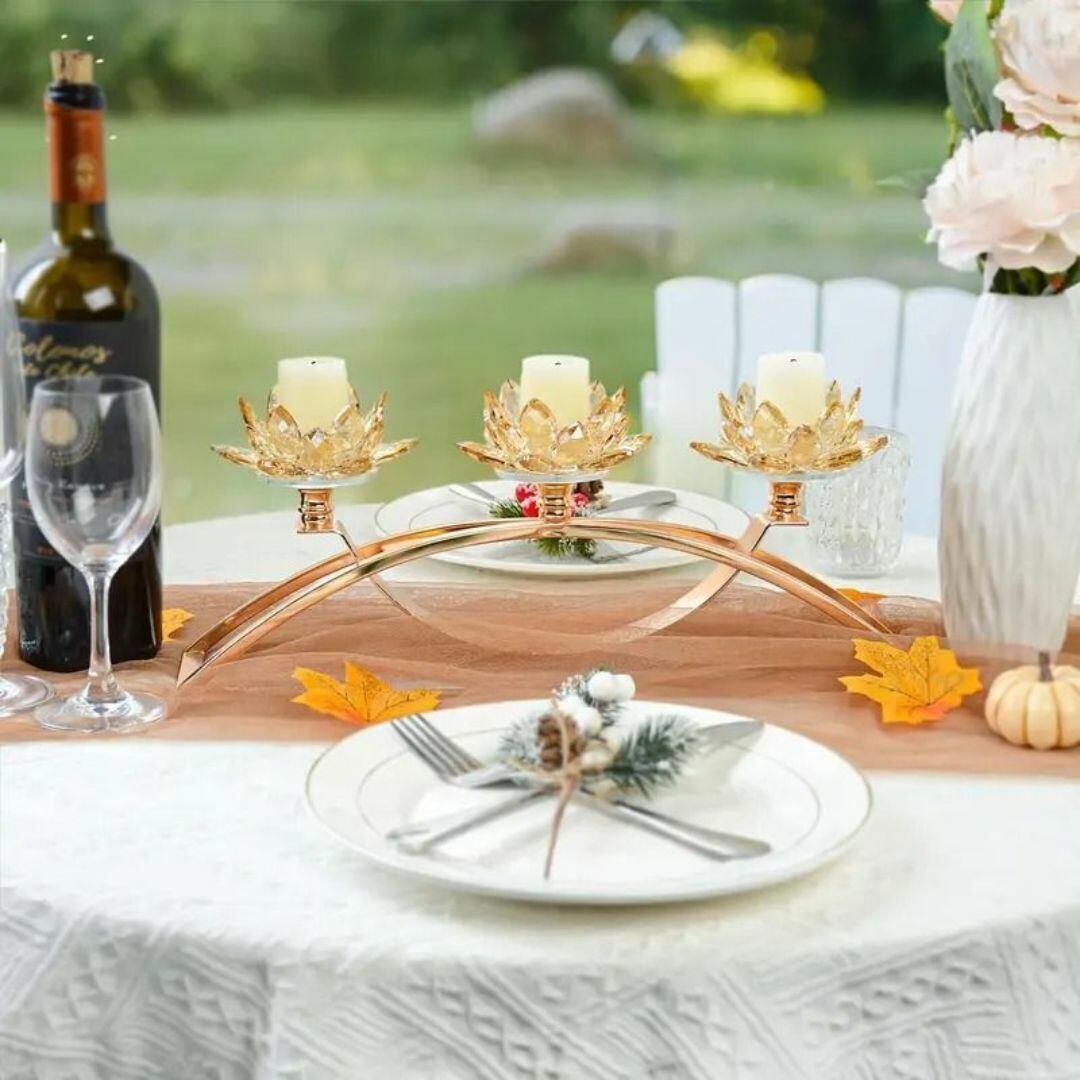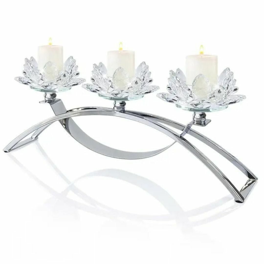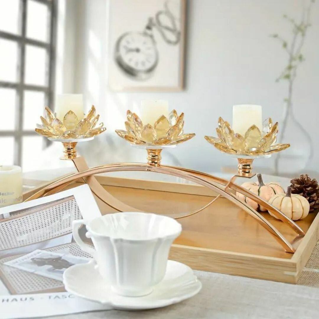 華やかな花の台座が目を引く、3連タイプのキャンドルホルダー兼花差し。繊細な装飾が施されたデザインは、テーブルを彩るアクセントとしてぴったり。キャンドルや花、小物を自由にアレンジできる多機能なインテリアアイテムです。ゴールドとシルバーの上品なカラーバリエーションで、リビングや玄関をロマンチックに演出。記念日やお祝いのギフトにも最適です。