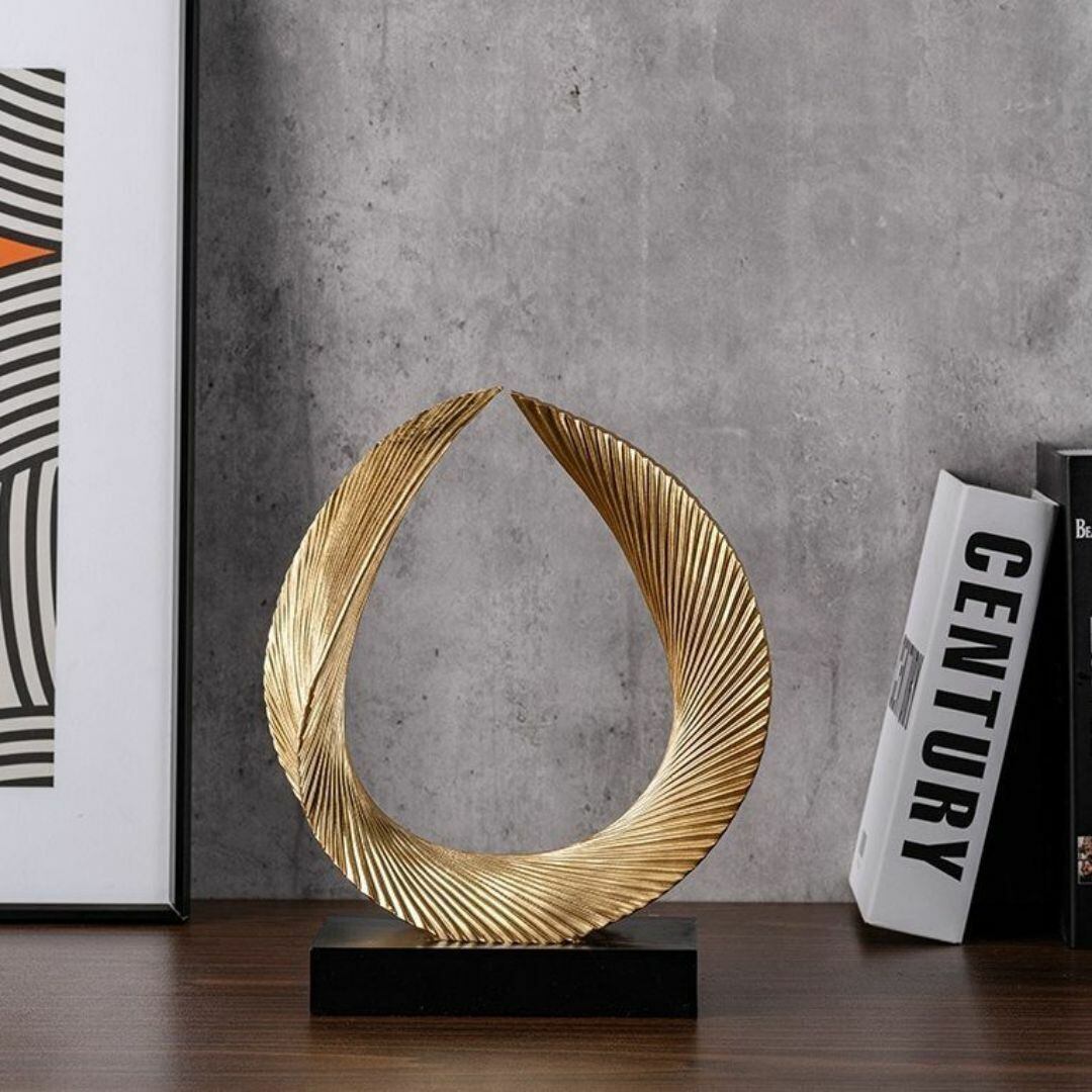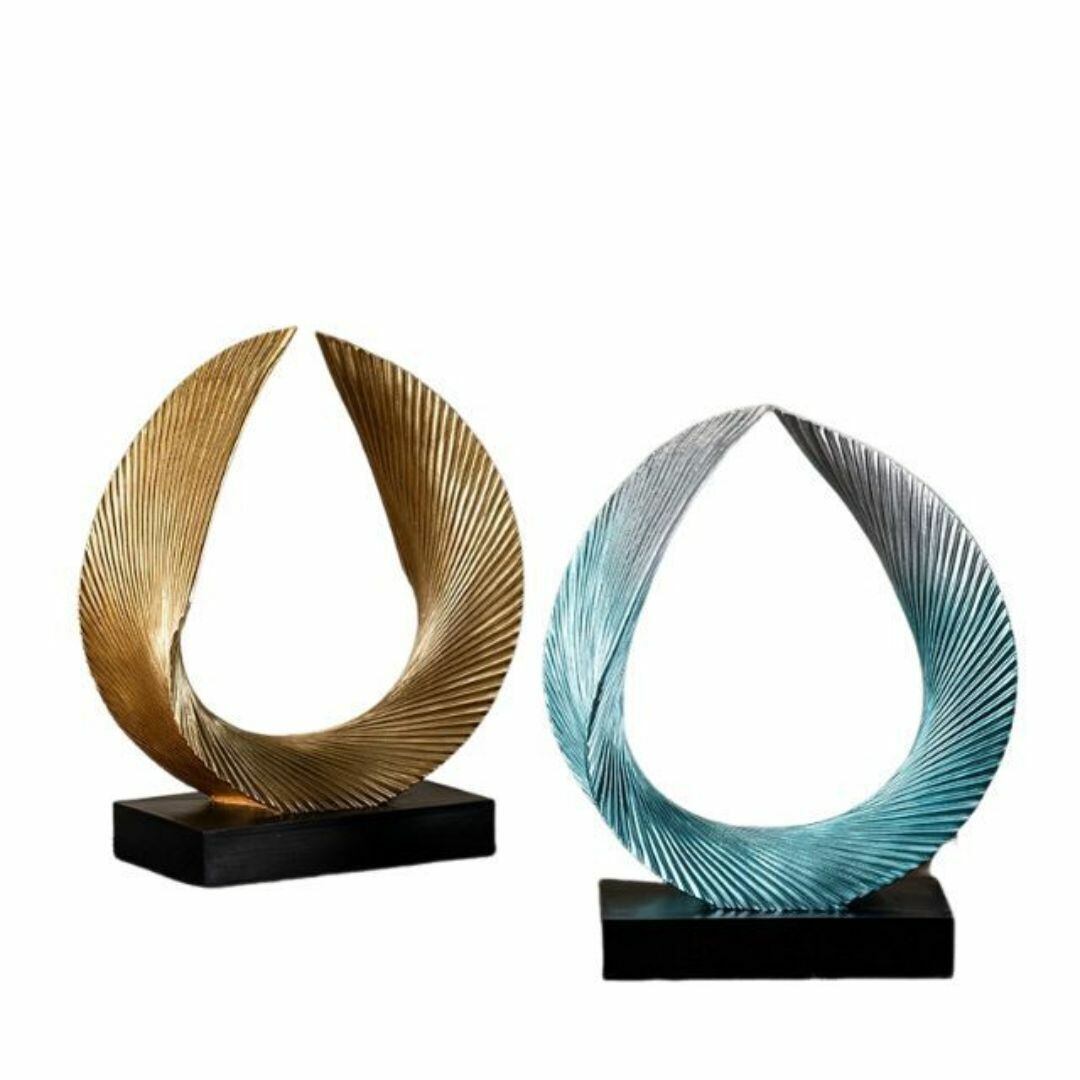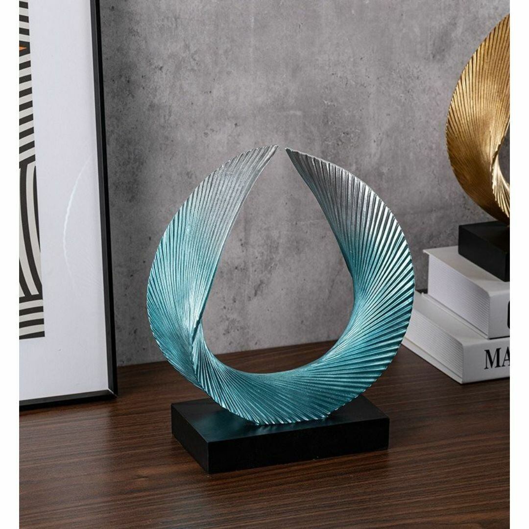 置物 オブジェ オーナメント 円を作る羽 独創的 神秘的 黒の台座 おしゃれ モダン 玄関 リビング 装飾 プレゼント ギフト 幻想的 リッチ感 オフィス 樹脂 カラーバリエーション ゴールド ホワイト ブルー