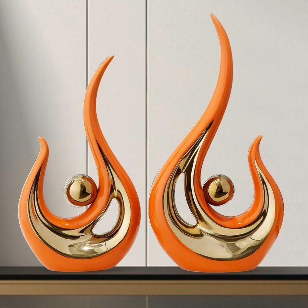 炎のようにうねる曲線と、球体を包み込むようなフォルムが印象的な、大小2点セットのセラミックオブジェ。中空のシルエットが空間に抜け感を与え、幻想的かつ独創的な存在感を放ちます。光の当たり方で表情が変化し、インテリアとして飽きがこないデザイン。玄関やリビング、オフィスなど、さまざまなシーンに映えるモダンな装飾アイテムです。カラーバリエーションも豊富で、プレゼントやギフトにもおすすめのアイテムです。