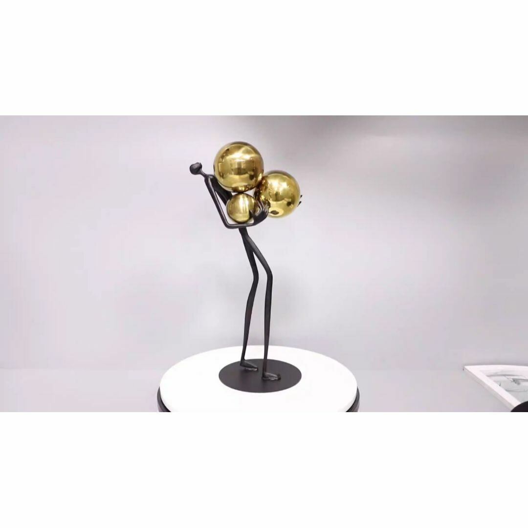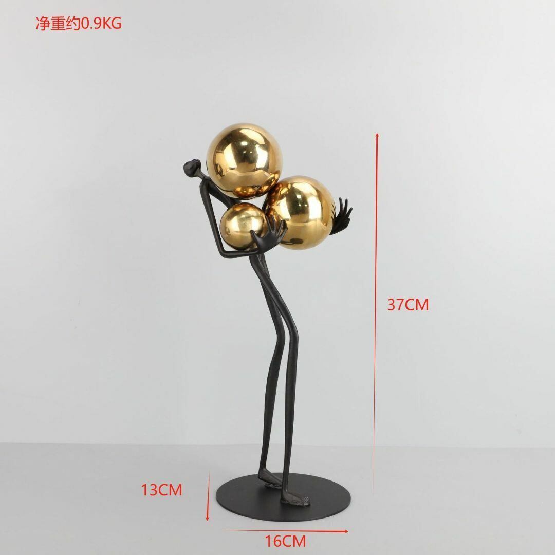 金色の3つの球体を掲げた、ユニークでアーティスティックな黒い人型オブジェ。シンプルながら存在感のあるデザインは、モダンな空間にぴったり。球体は取り外し可能で、小物置きやアクセサリートレイとしても活躍します。金属製の質感が高級感を演出し、玄関やリビング、オフィスのインテリアとしてもおすすめ。おしゃれで実用性も備えた、ギフトにも最適な装飾アイテムです。