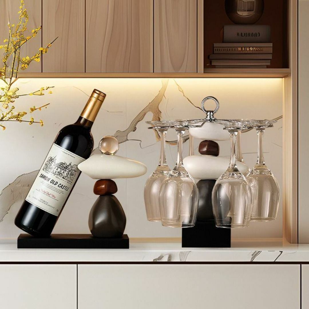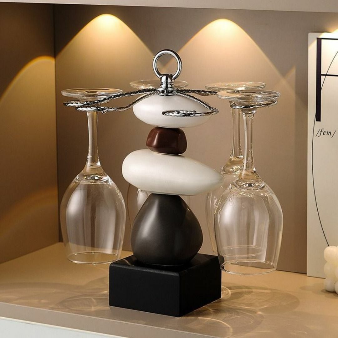 石を積み上げたようなデザインが特徴的な、6本用ワイングラスラック。まるでアートオブジェのような存在感で、グラスを引き立てつつ空間に洗練されたアクセントを加えます。グラスは付属せず、テーブルやキッチン、リビングのインテリアとしても映えるスタイリッシュな佇まい。置物感覚で飾れる、おしゃれで機能的なワイングラスホルダーです。