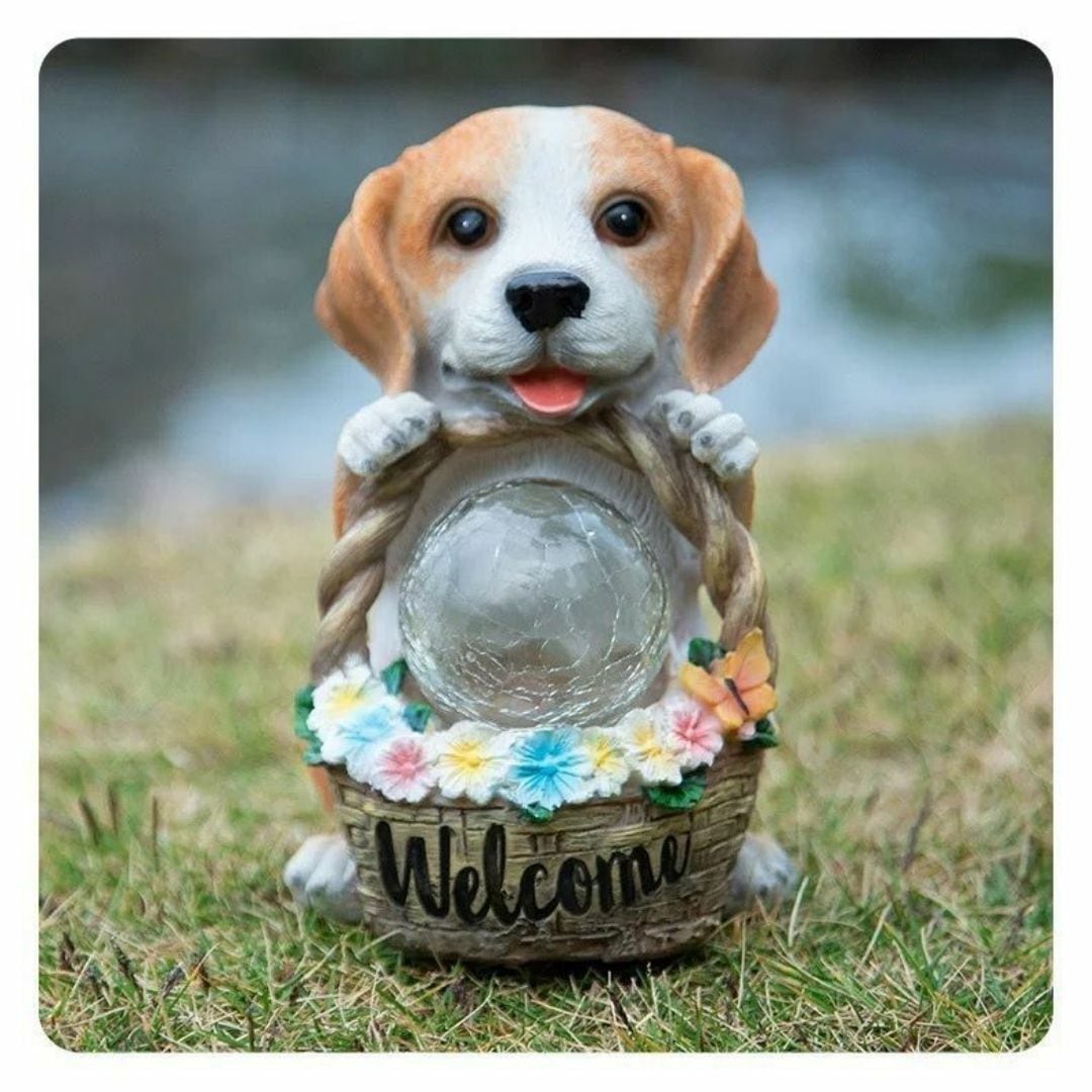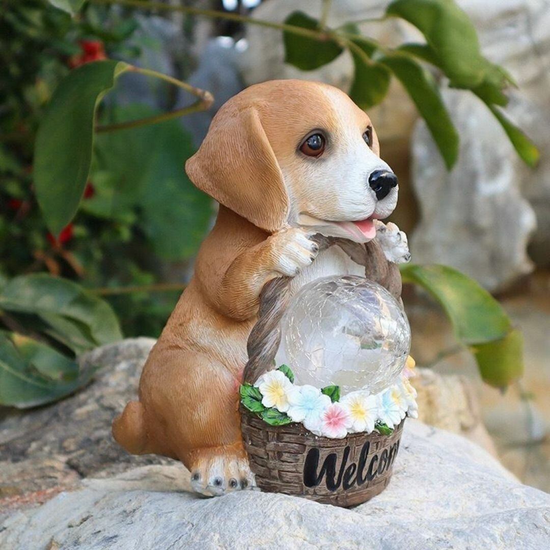 置物 オブジェ 野外ライト 照明 子犬 動物 ベージュ ソーラーライト おしゃれ モダン 玄関 LED リビング 樹脂 かわいい レジン 装飾 プレゼント ギフト ガーデン