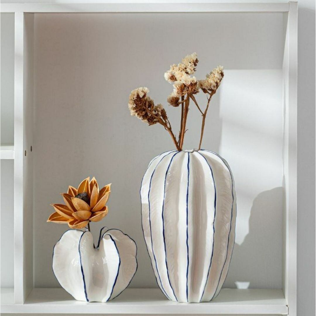 セラミック製のアート花瓶。洗練されたホワイトカラーが上品で、おしゃれなモダン空間を演出します。2つのバリエーションから選べ、玄関やリビング、オフィスなど幅広い場所に映えるデザイン。装飾用としても花器としても使え、幻想的でリッチ感あふれる雰囲気をプラス。大切な方へのプレゼントやギフトにもぴったりの置物・オブジェ・オーナメントです。