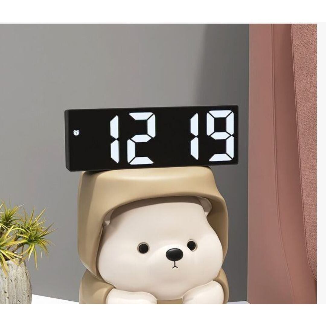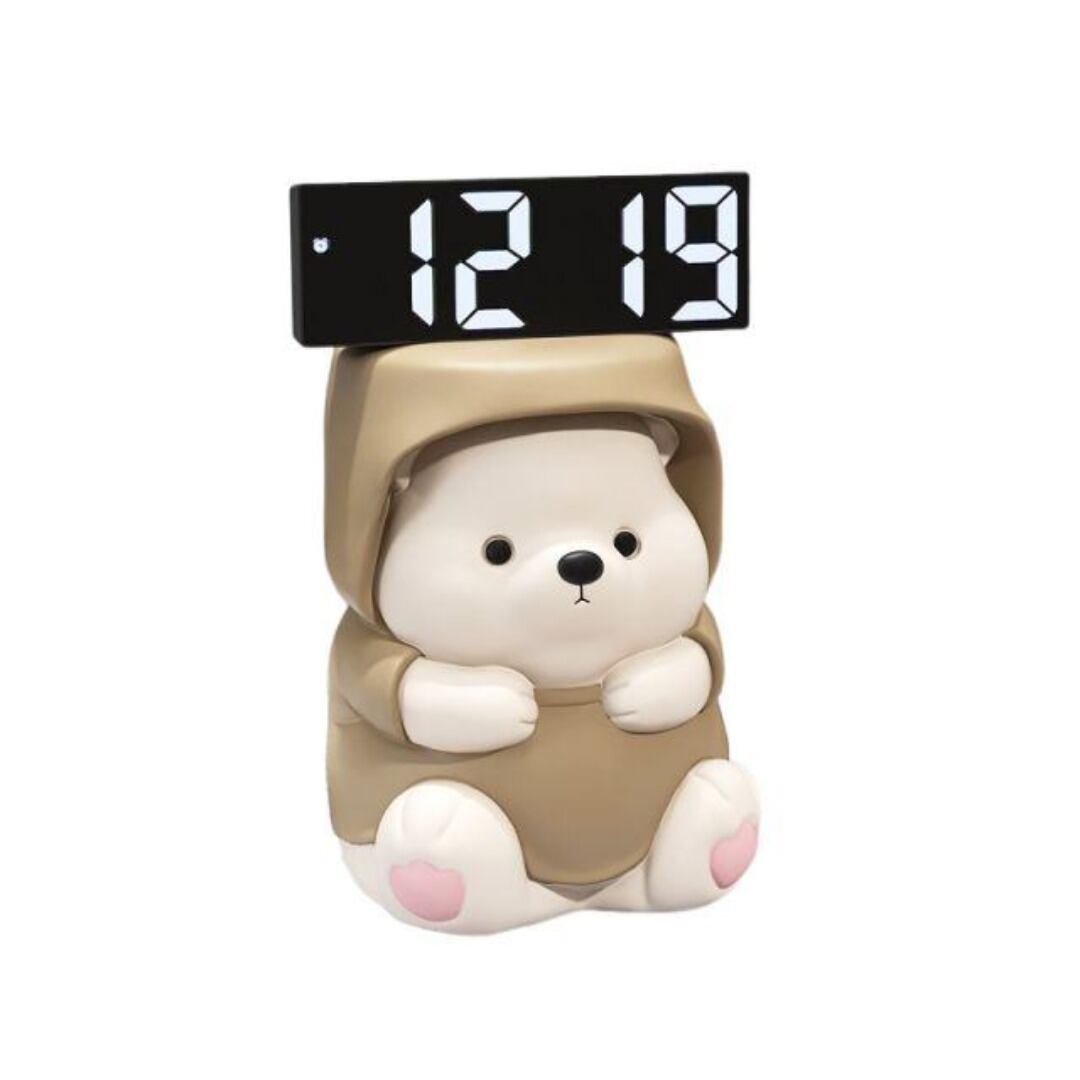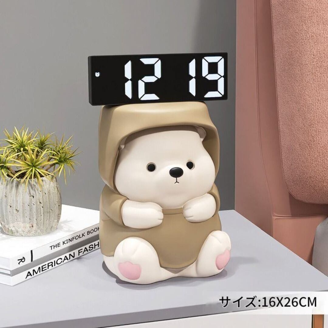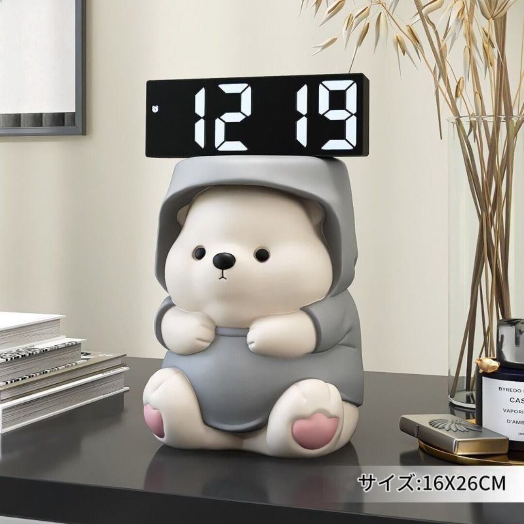 置時計 デジタル時計 置物 かわいい カッパを着たクマ 太っちょ ずんぐり 動物 おしゃれ カラーバリエーション グレー ブラウン ゴールド リビング 寝室 インテリア モダン 樹脂 癒し