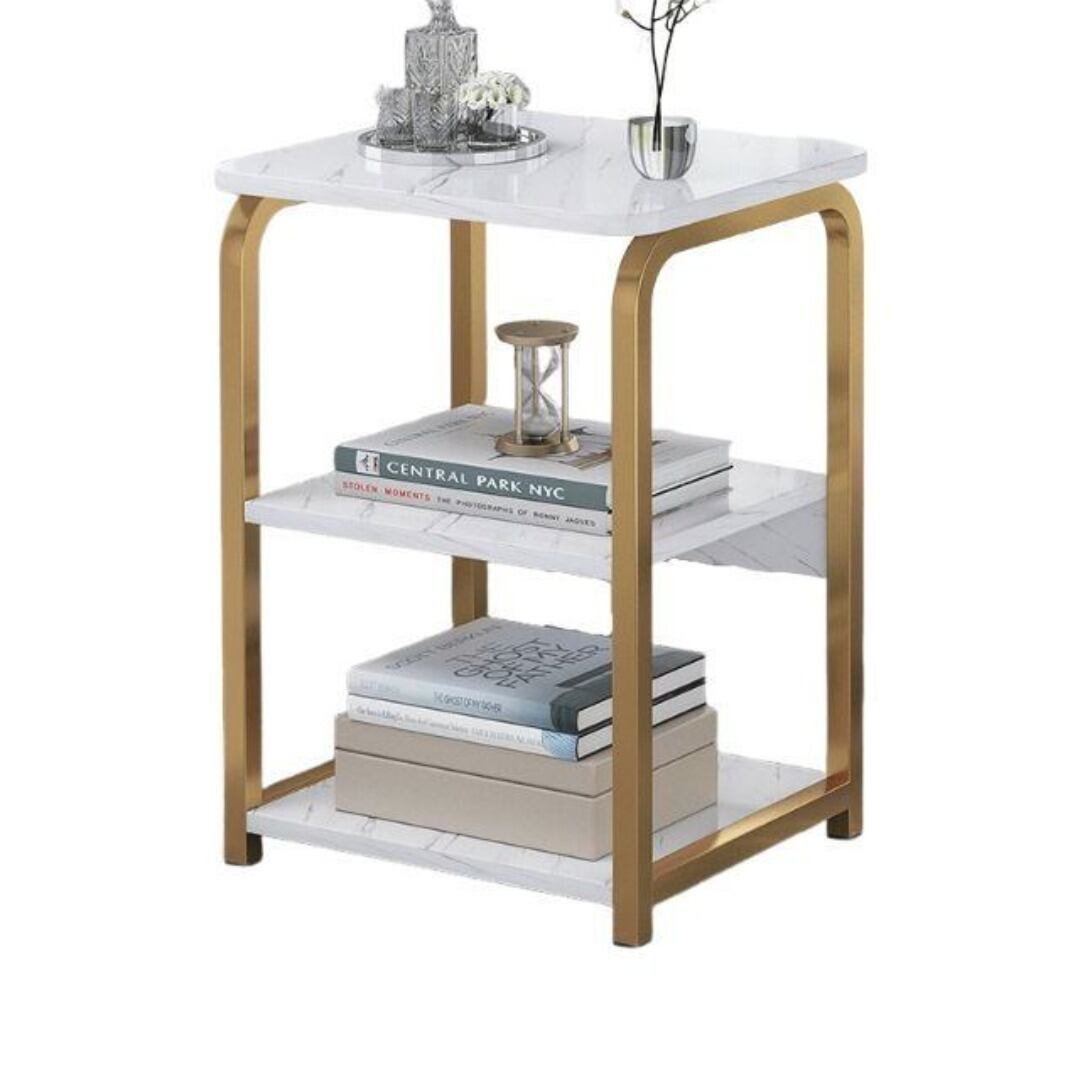 おしゃれで機能的なサイドテーブル。長方形プレートと高さ62cmの設計で、カフェ風インテリアやリビング、寝室、書斎、ホテル、オフィスに最適。コーヒーテーブルとしても使え、3段仕様で収納力も抜群。大理石柄・灰色・茶色など、4つのバリエーションから選べるモダンなデザインです。