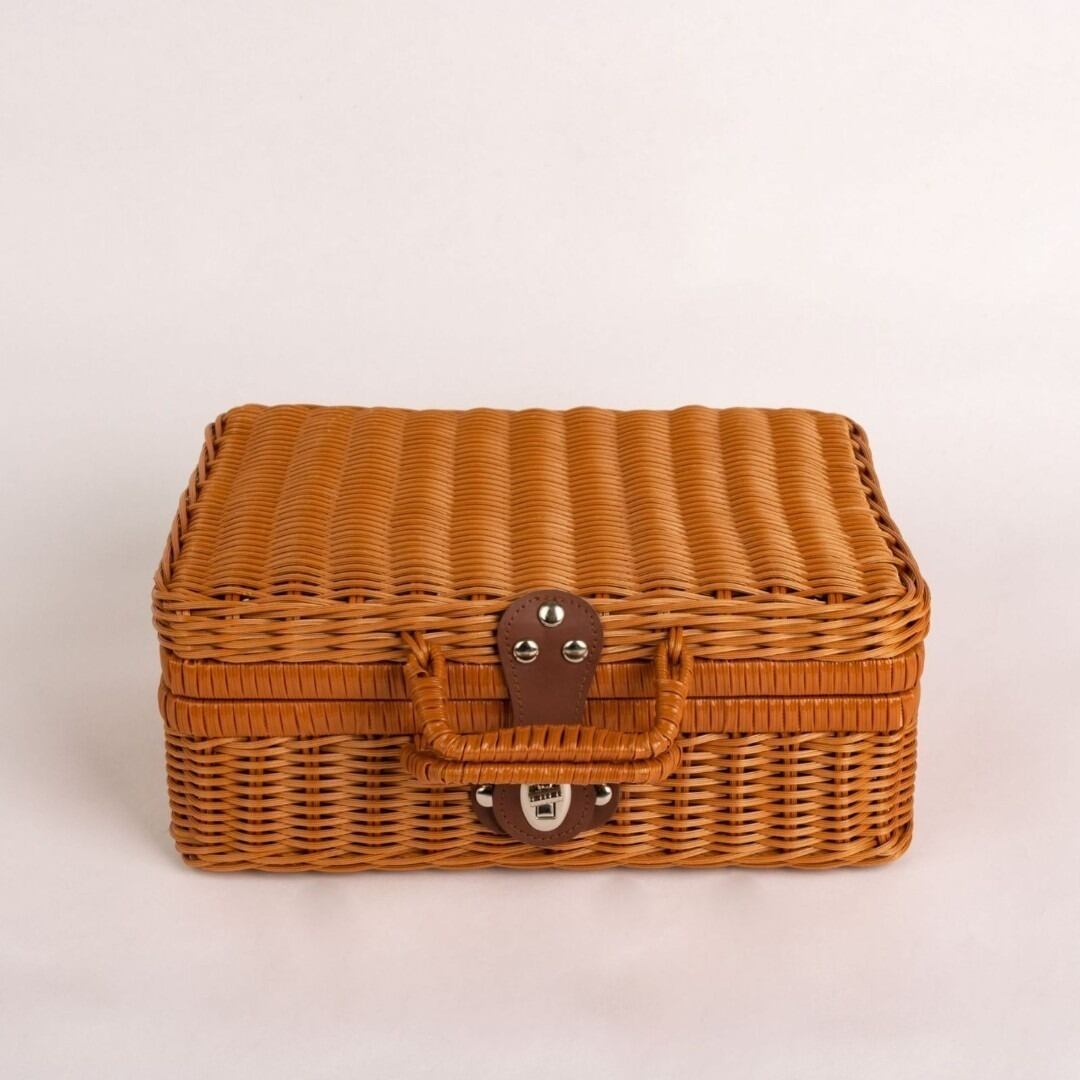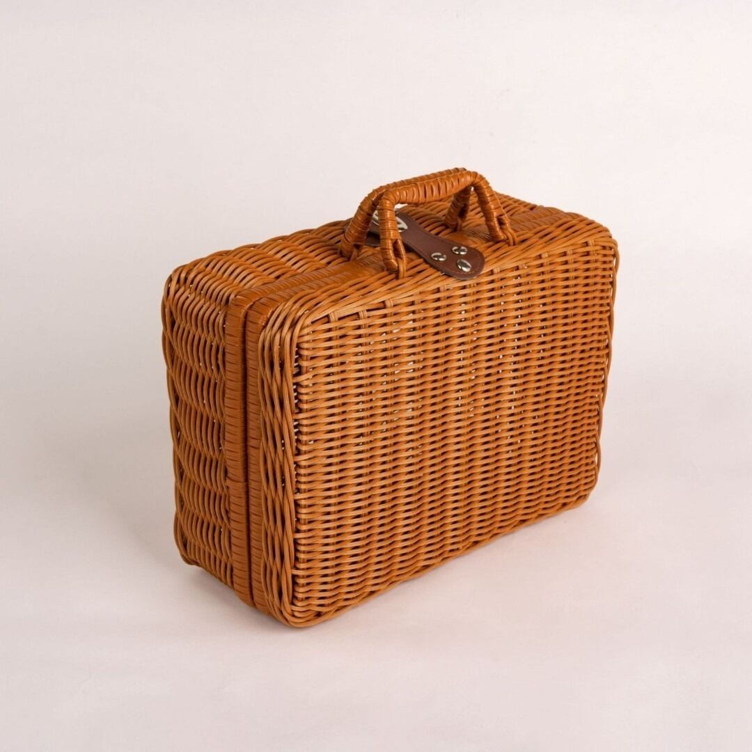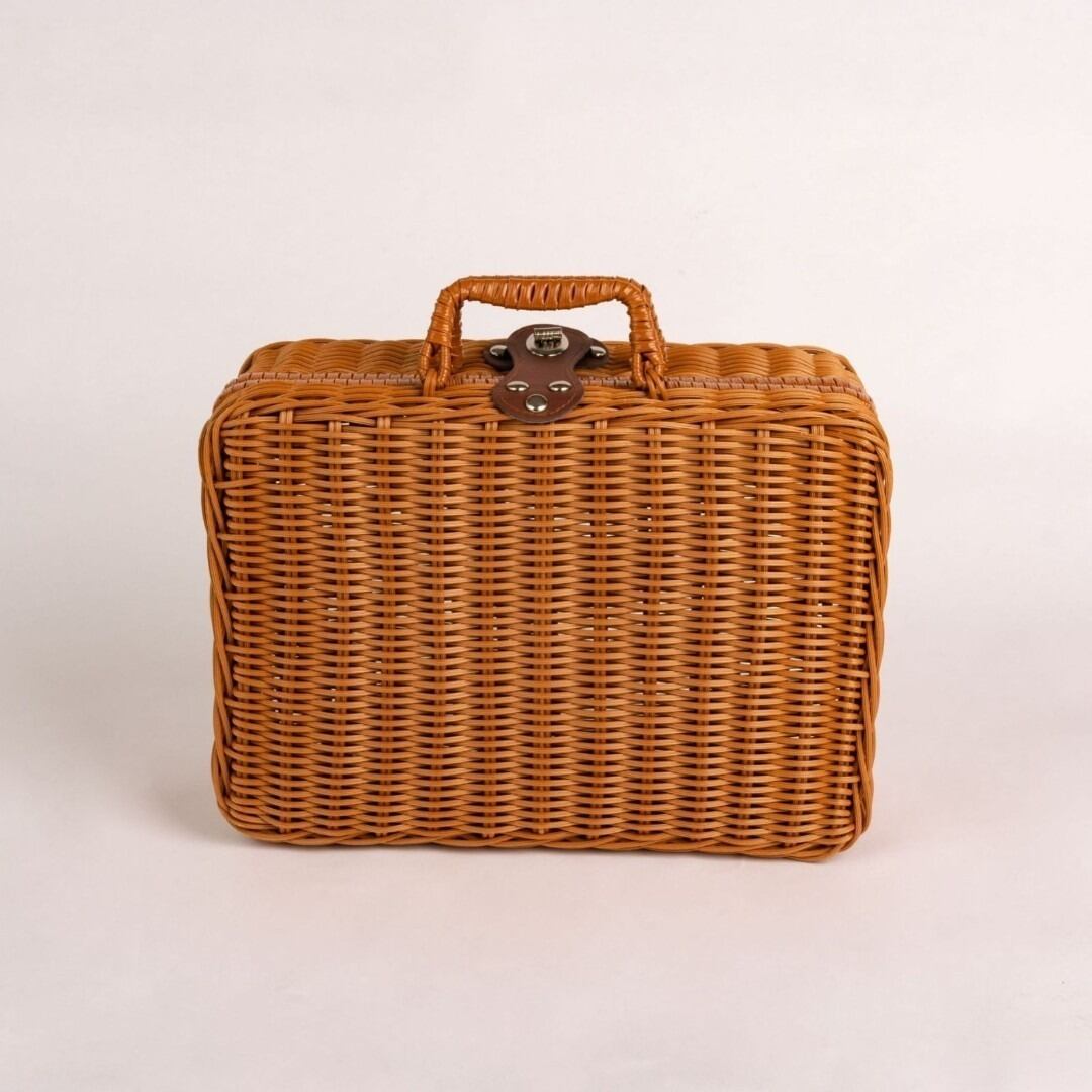 収納ケース 網タイプ 籠のような素材 アタッシュケース使用 おしゃれ ランチバッグ キャリーバッグ プラスチック 多機能 十字止め ブラウン
