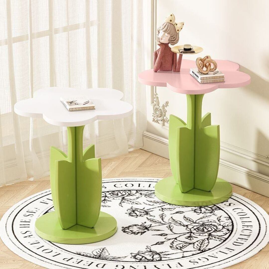 お花の形をしたフラワー型の台と、茎をイメージした脚が特徴のサイドテーブル。高さ50cmで機能的かつおしゃれなデザインは、カフェやリビング、寝室、書斎、ホテル、オフィスなど幅広い空間にマッチします。モダンな雰囲気を演出するコーヒーテーブルとして活躍し、カラーバリエーションも楽しめます。