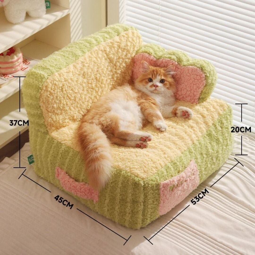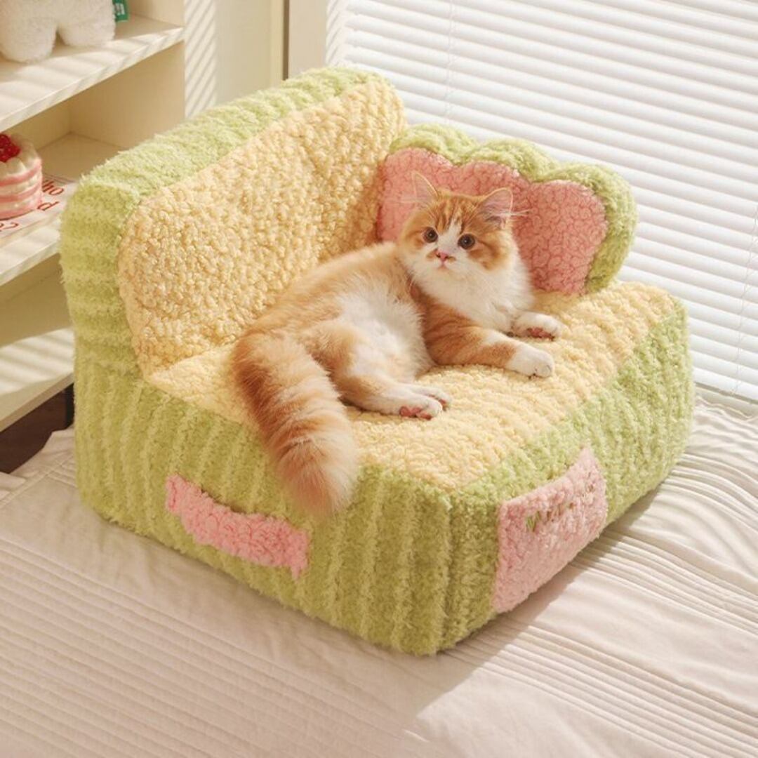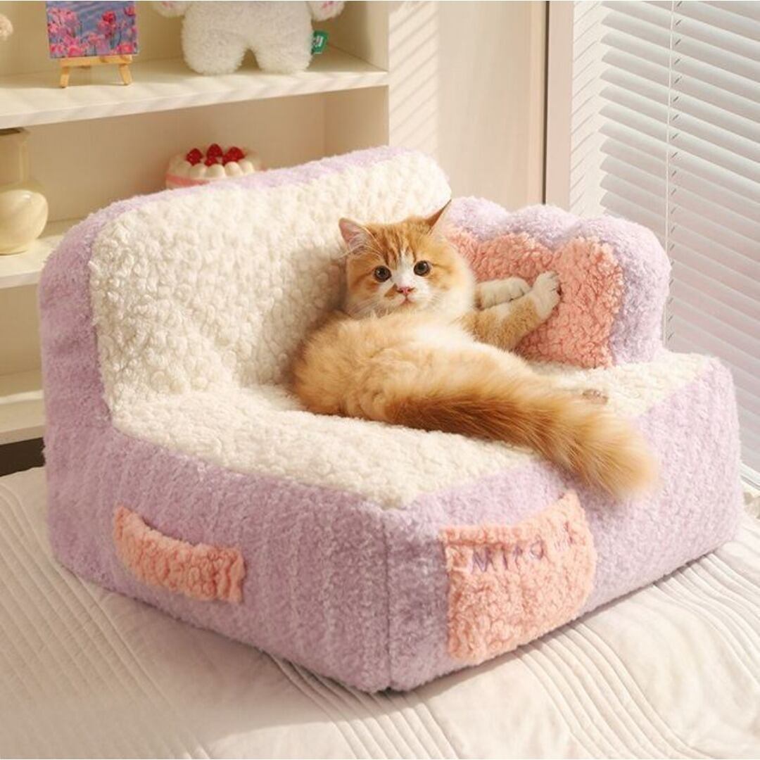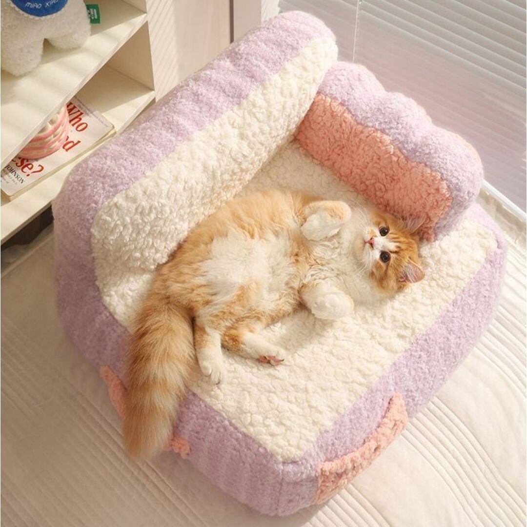 ふわふわ・もこもこの手触りが魅力のネコ用ペッドベッド。取り外し可能なカバーでお手入れも簡単、おしゃれなパステルカラーがリビングや寝室のインテリアに馴染みます。ぬいぐるみのような可愛らしさで、ペットのリラックスタイムを快適にサポート。パープル・グリーンのカラーバリエーションからお好みに合わせてお選びいただけます。