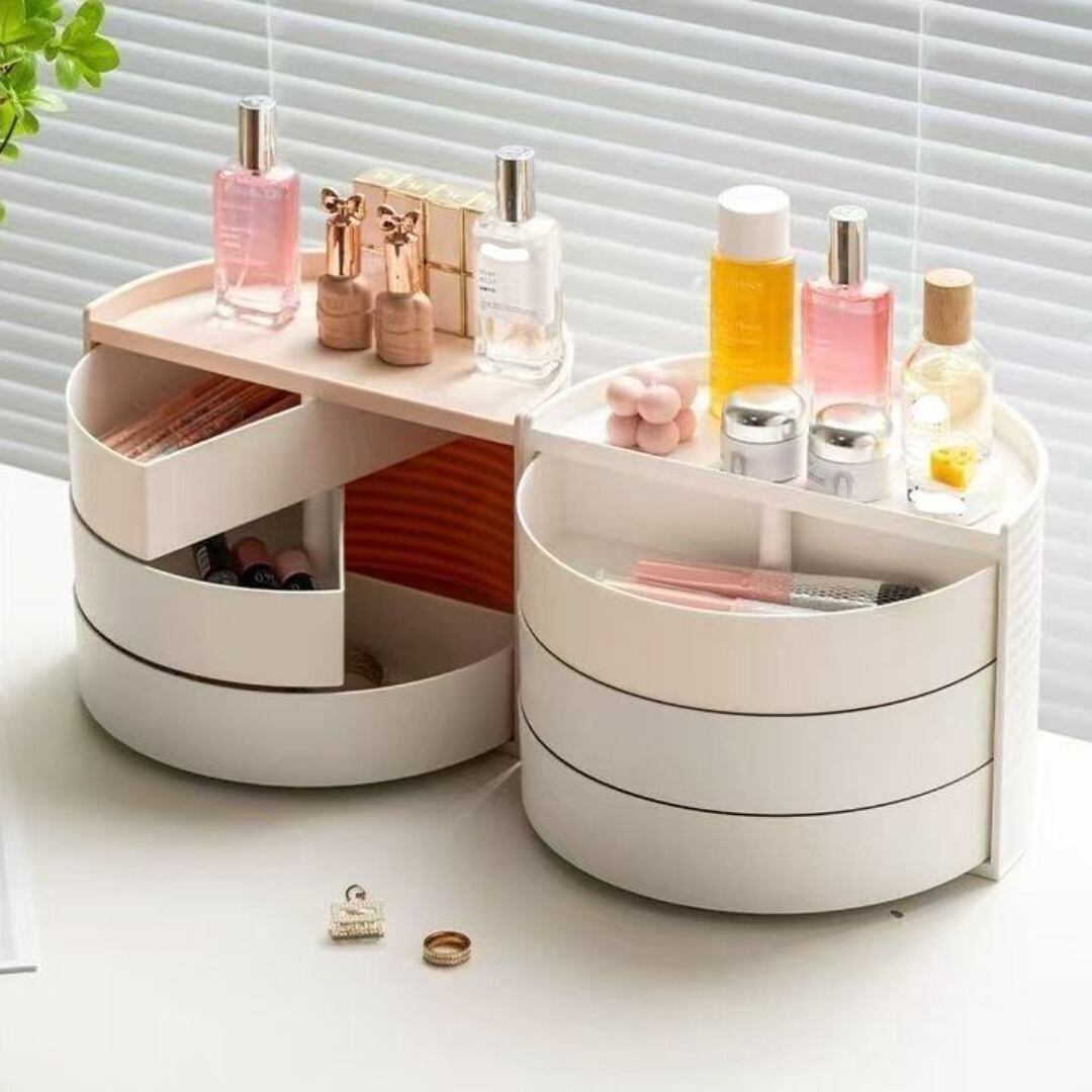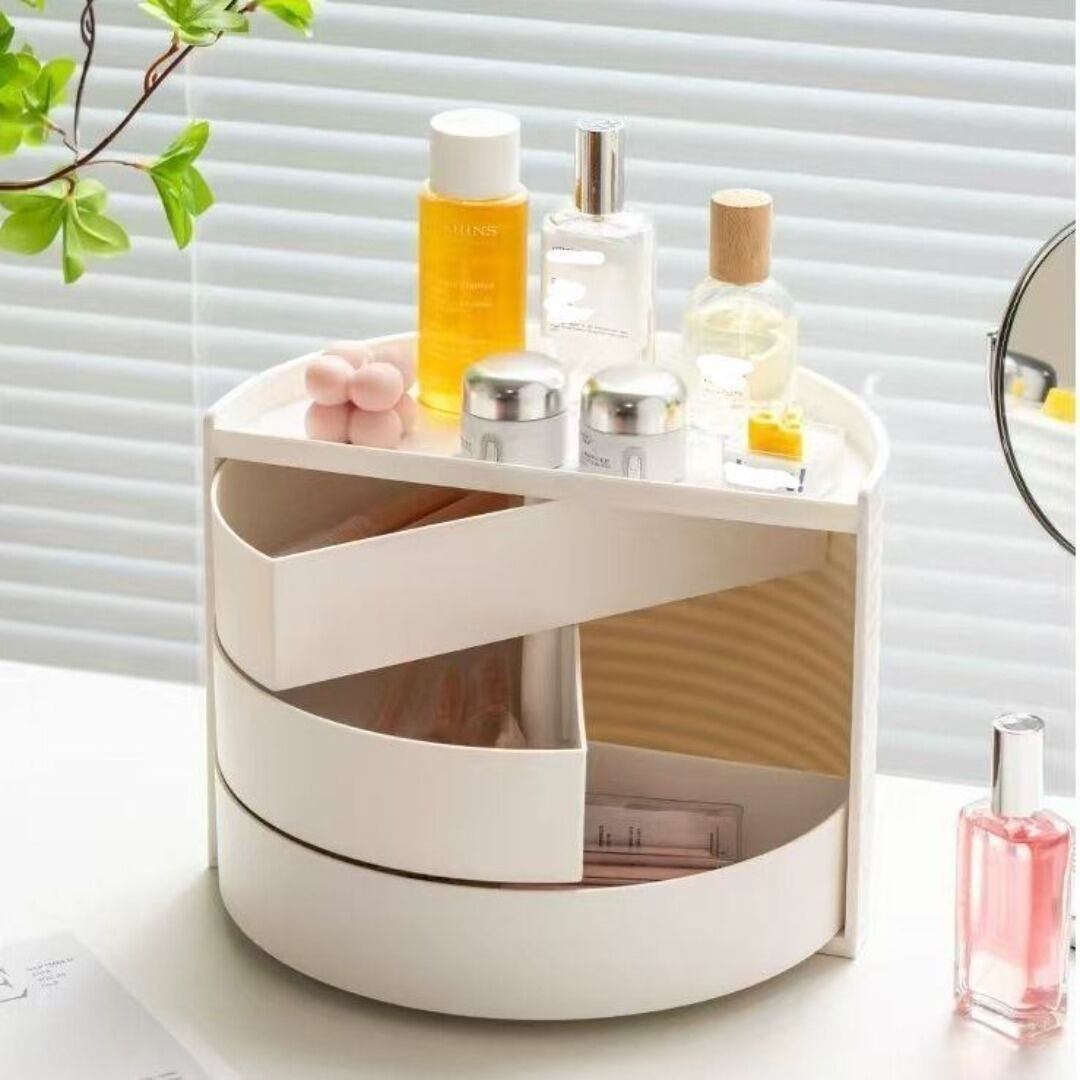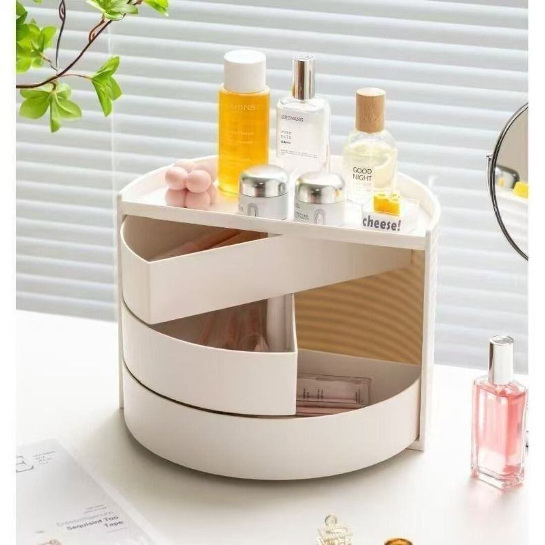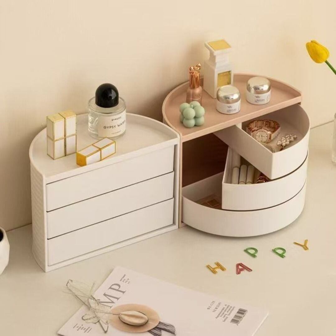 小物入れ 回転式 3つの引き出し かまぼこ型 シンプル 便利 カラーバリエーション ホワイト ピンク かわいい プレゼント ギフト リビング 寝室 おしゃれ