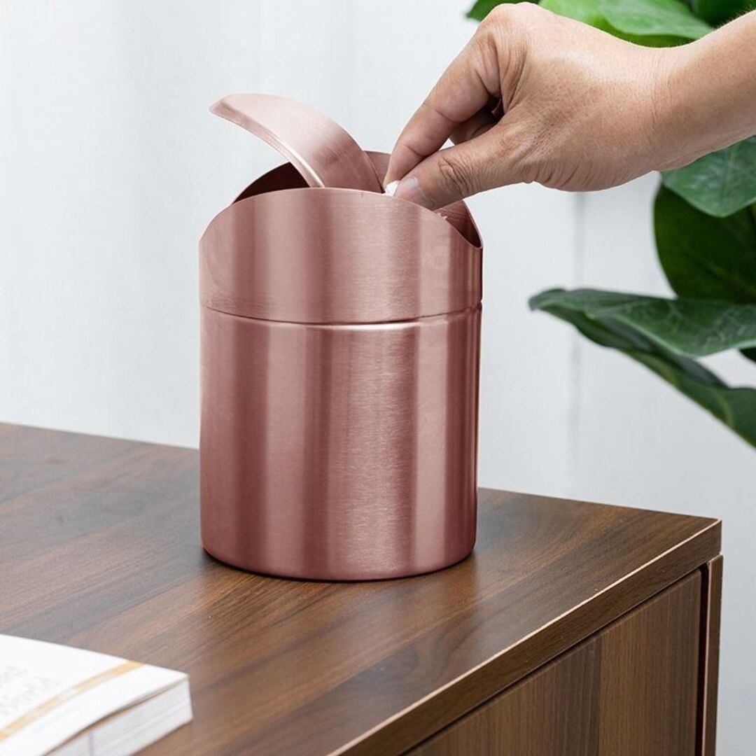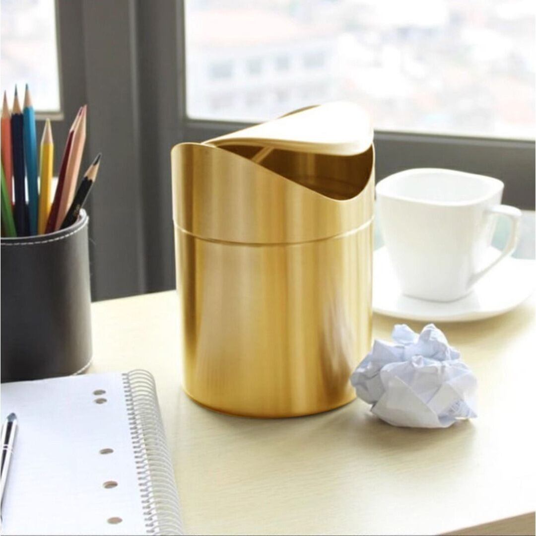 ゴミ箱 トラッシュボックス 円形 蓋つき 取り外し可能 小型 回る蓋 カラーバリエーション ゴールド シルバー ピンク メタリックカラー シンプル おしゃれ リビング トイレ バスルーム 多機能