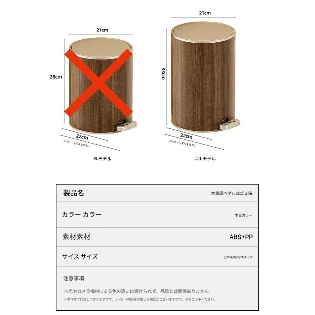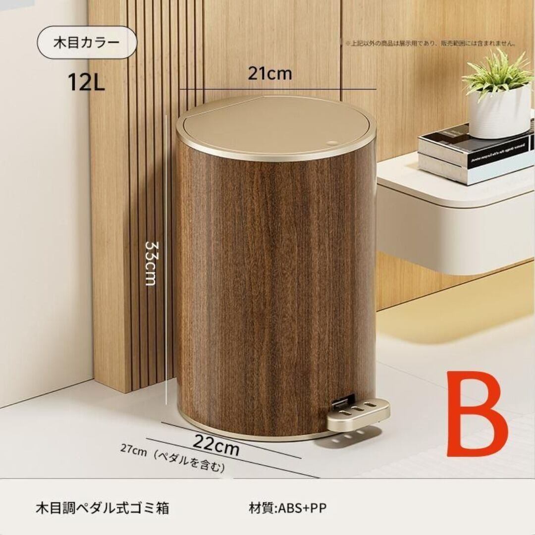ゴミ箱 トラッシュボックス 蓋つき フットボタン バリエーション 長方形タイプ 円柱タイプ 木目 おしゃれ 12L シンプル 内コンテナ取り外し可能 掃除簡単 リビング トイレ バスルーム 多機能 防水 L