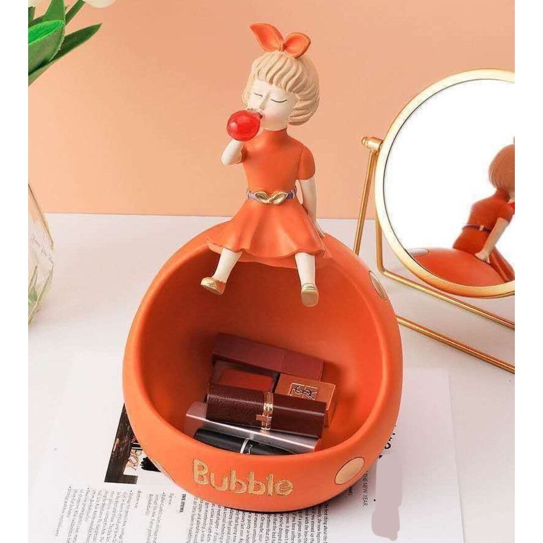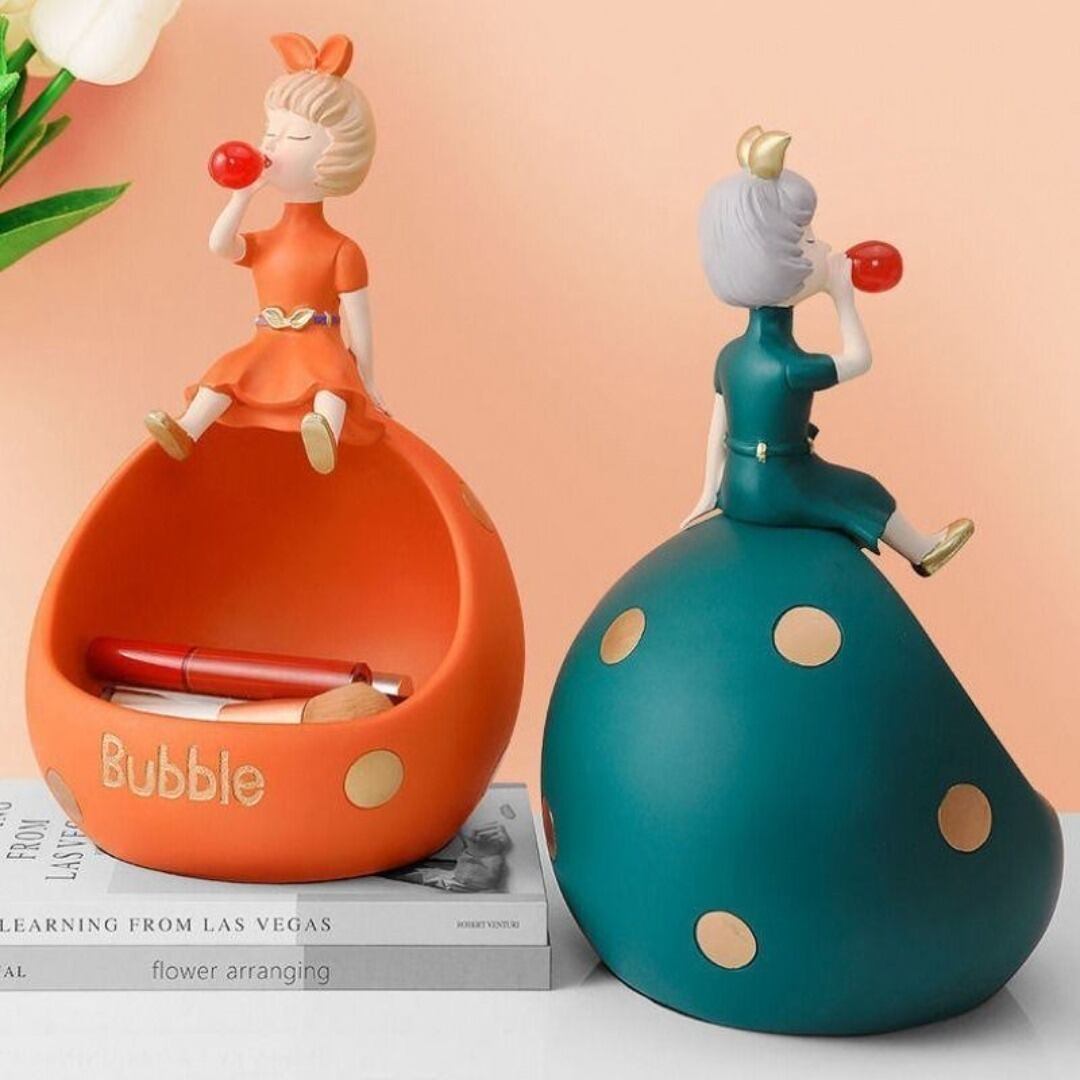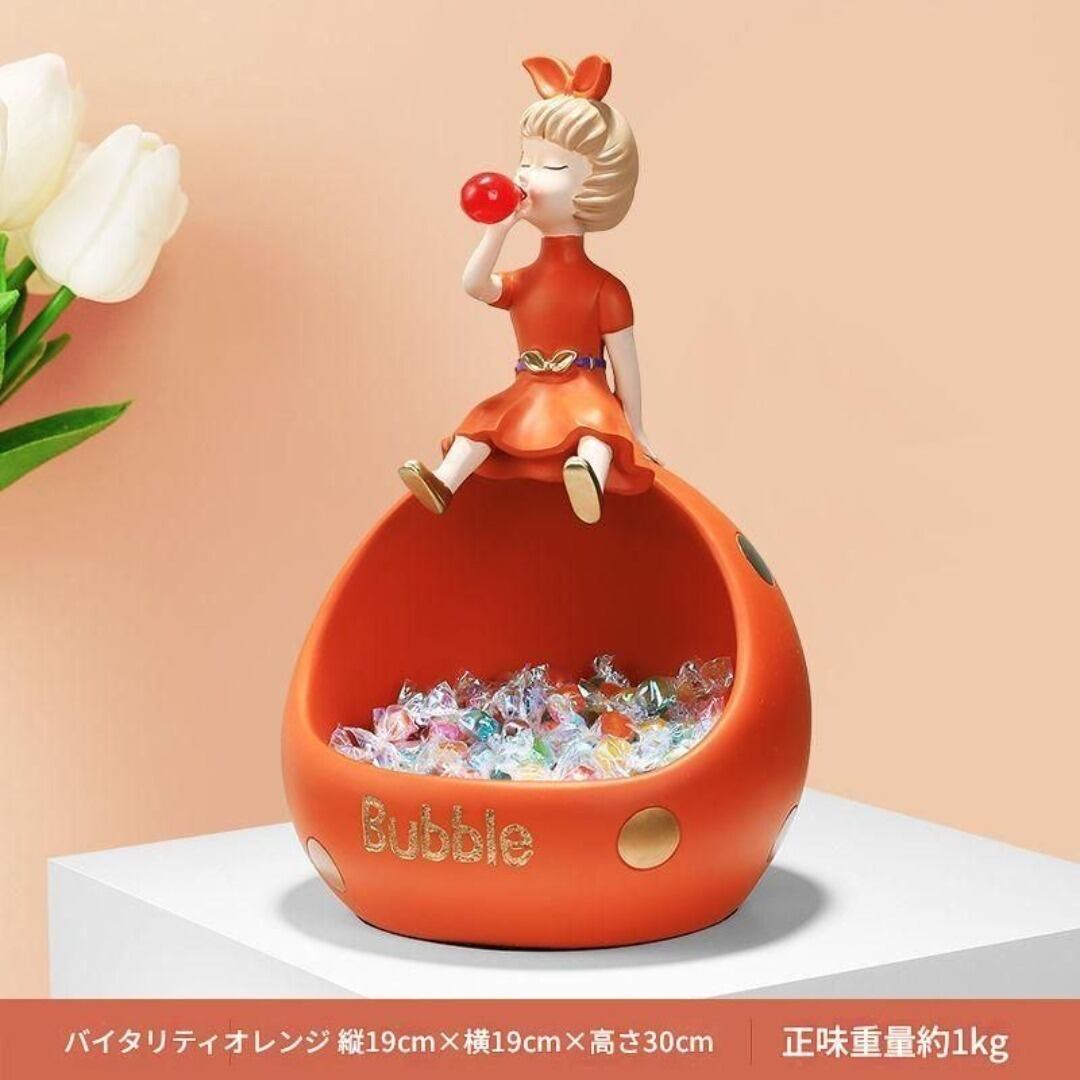小物入れ ボール型 風船を膨らませる 座った女の子 水玉模様 カラーバリエーション レッド オレンジ グリーン かわいい 置物 プレゼント ギフト リビング 寝室 キーケース おしゃれ