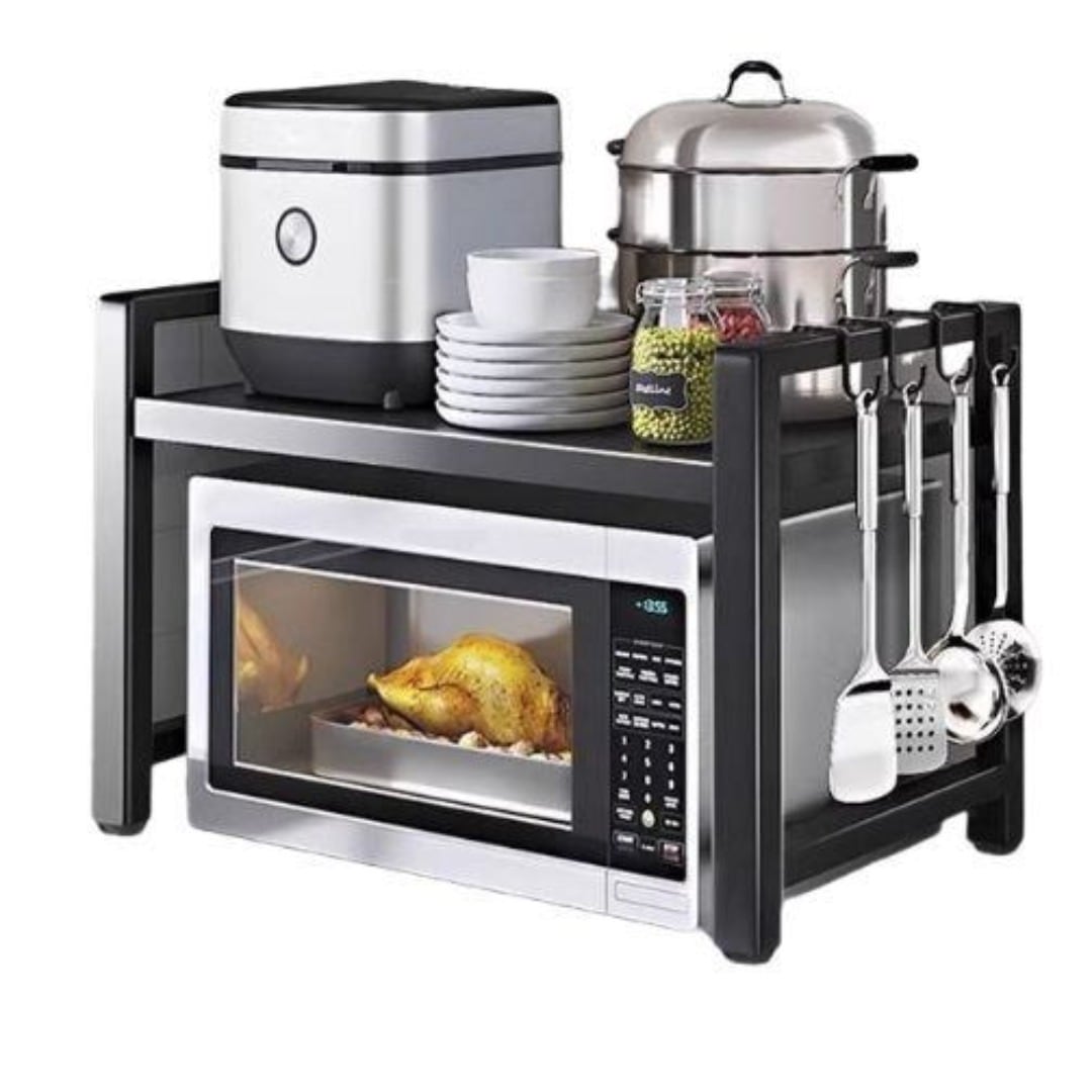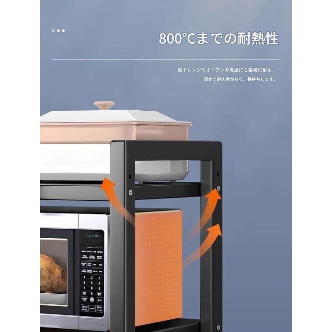 スチールラック 棚 電子レンジ キッチン 多機能 シンプル 調理用具掛け ブラック 耐熱 安定感 掃除しやすい コンパクト 収納 調味料棚 便利 機能的 オーブントースター