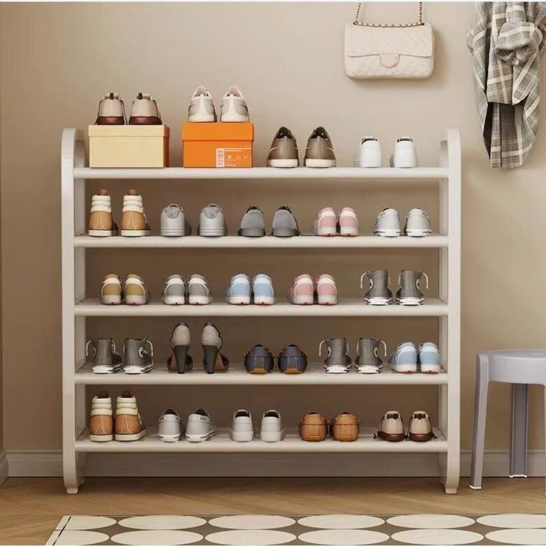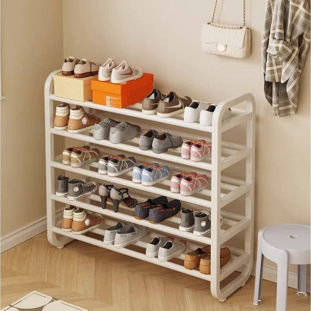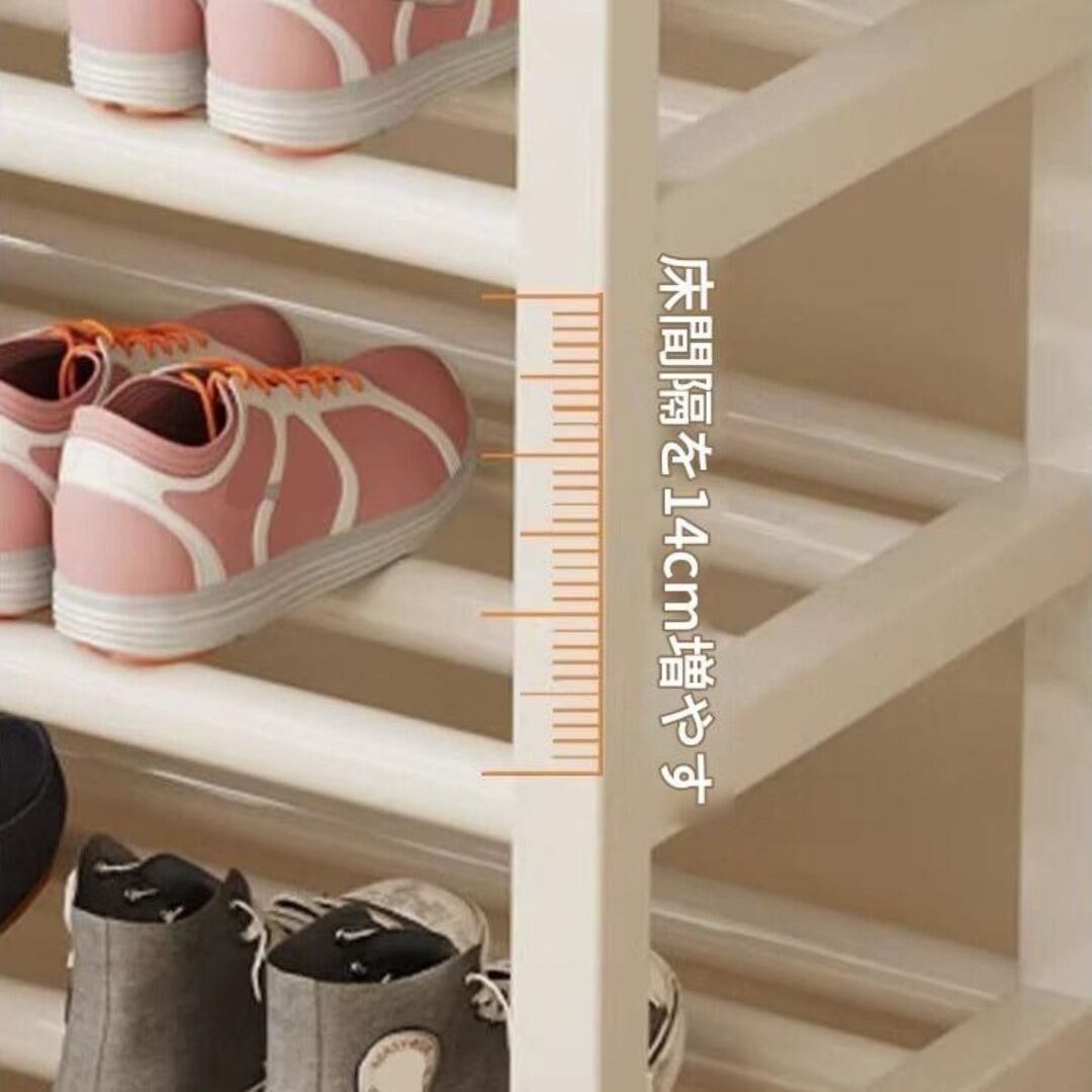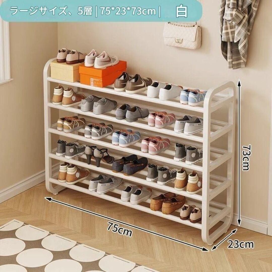 スリムで機能的な5段シューズラック。持ち手付きで移動も簡単、玄関スペースを有効に活用できます。ホワイトとブラックのカラーバリエーションから選べるシンプルでおしゃれなデザインが魅力。安定感があり、多くの靴をすっきりと収納できる大容量タイプです。日常使いから来客時まで、清潔感のある空間を演出します。