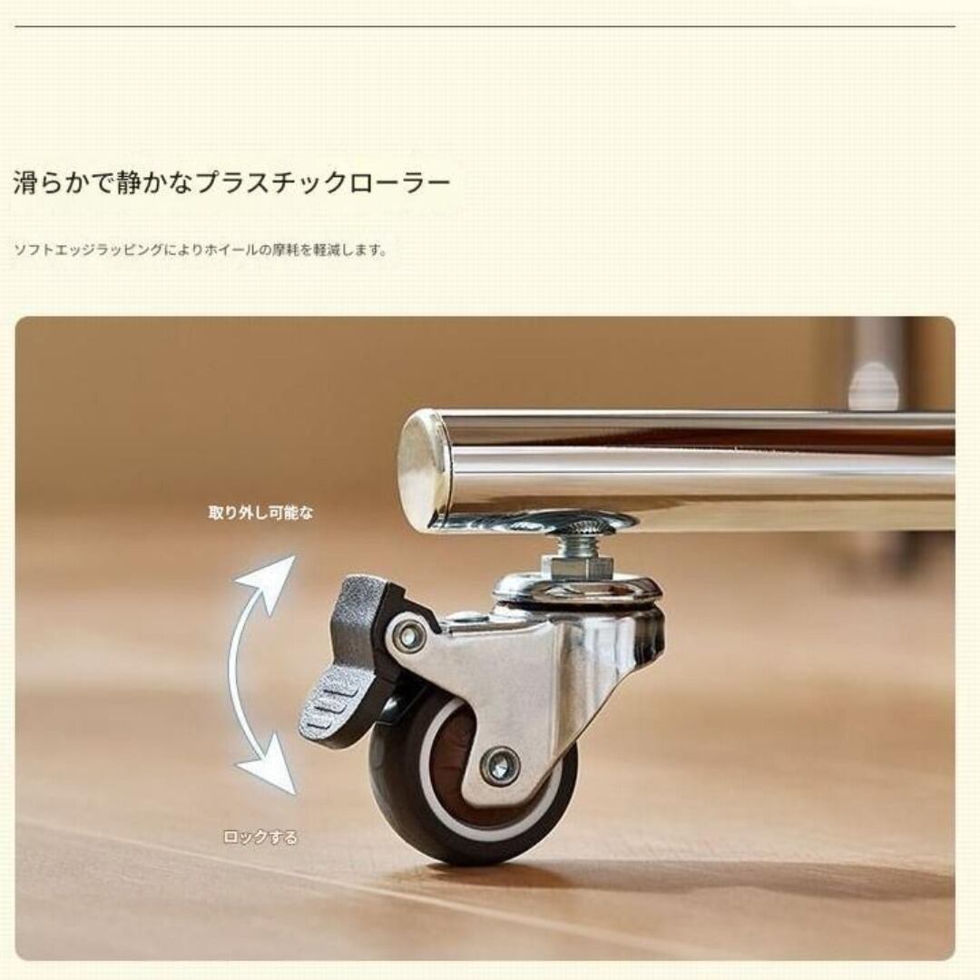 キャスター付きで自由に移動できる多機能サイドテーブル。ソファ脇やベッド横など、必要な場所へサッと動かせて便利です。収納袋が付いており、雑誌やリモコンの整理にも最適。ストッパー付きで安定感があり、リビング・ダイニング・寝室まで幅広く活躍します。ホワイト、ブラック、ブラウンのカラーバリエーションから、インテリアに合わせて選べるおしゃれなコーヒーテーブルです。
