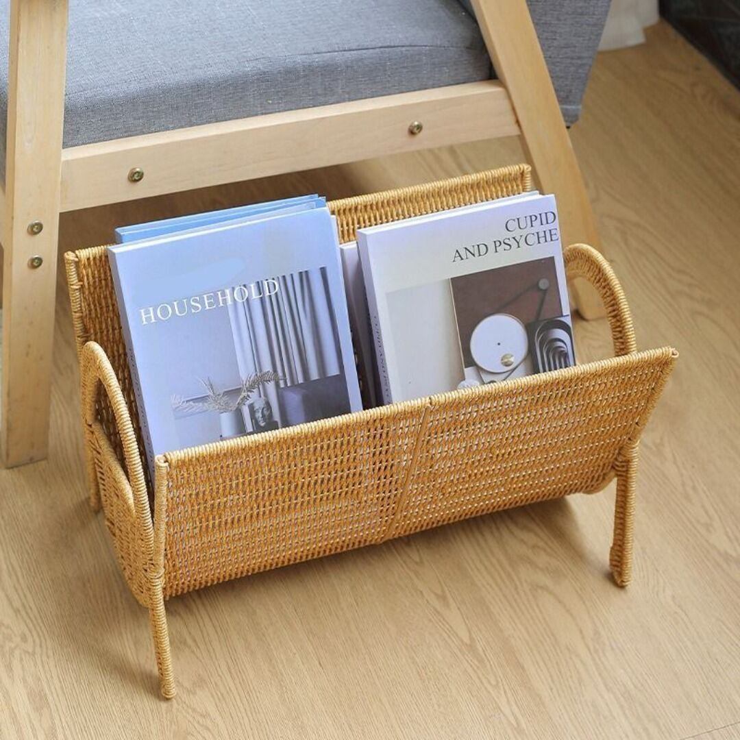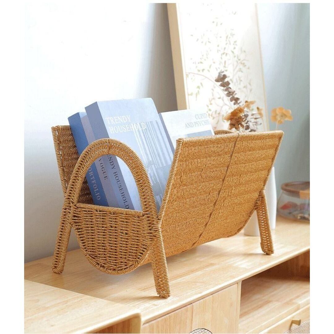 ブックシェルフ 本置き おしゃれ 機能的 多機能 ベージュ リビング バスルーム 玄関 スリッパ 小物置き 取っ手付き 網目 シンプル 通気性 ソファ脇