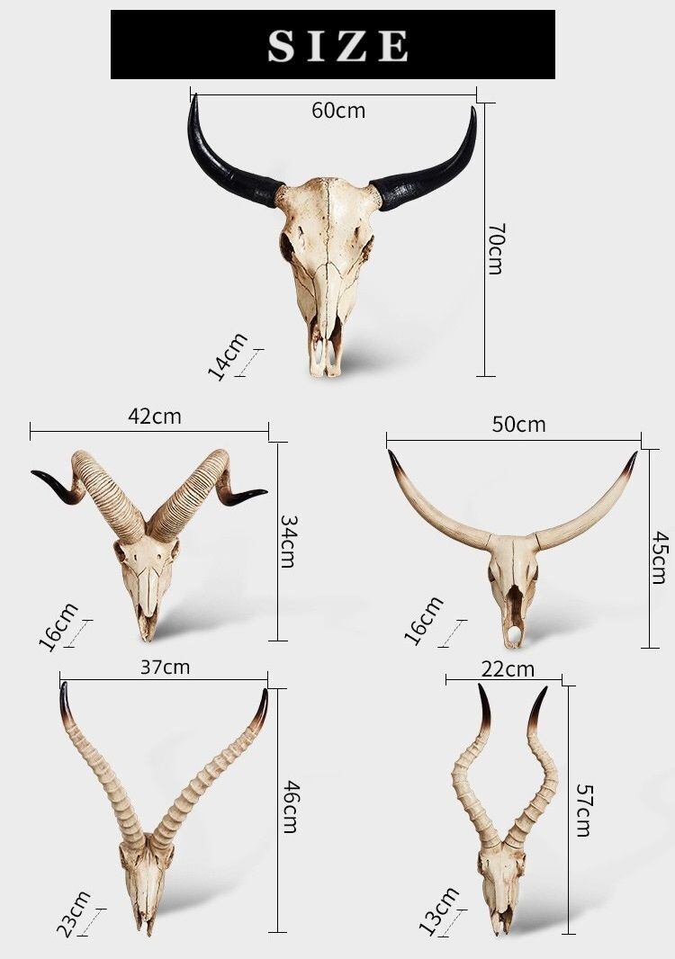 この羊の頭蓋骨は、インテリアにアンティークな魅力を加えるウォールアートです。