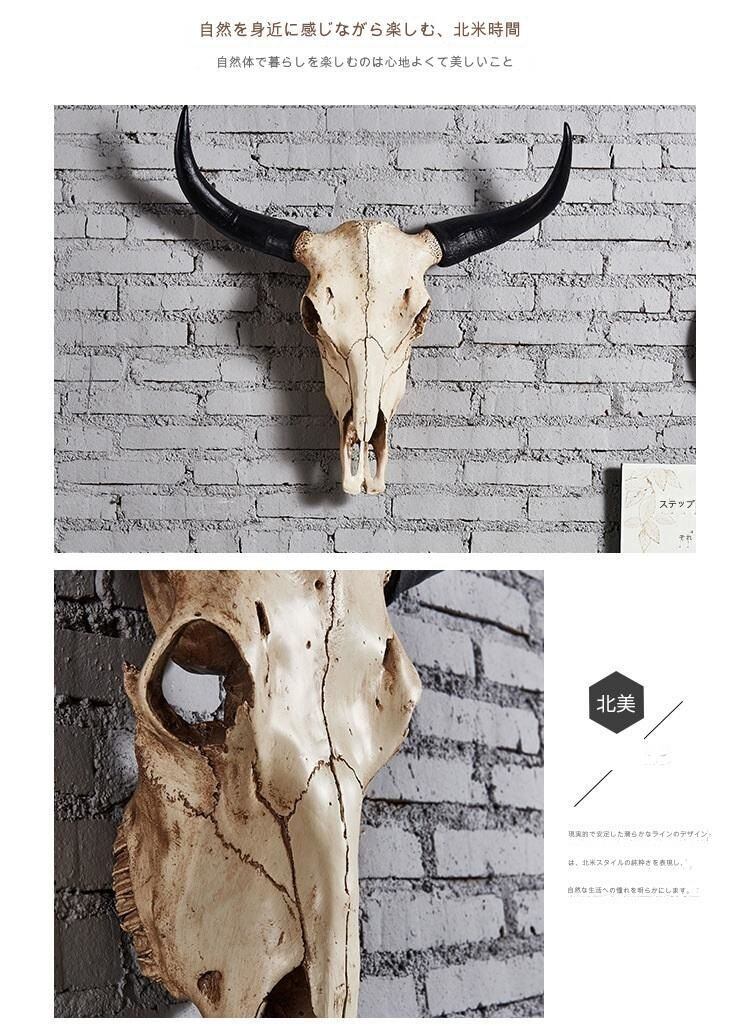この羊の頭蓋骨は、インテリアにアンティークな魅力を加えるウォールアートです。