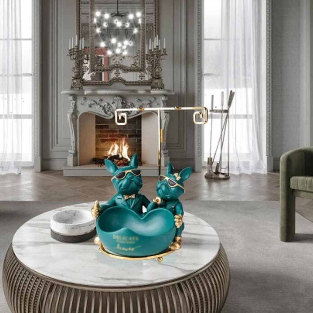 フレンチブルドッグ小物入れ グリーン フィギュア トレイ ケース 置物 オブジェ おしゃれ かわいい 2匹 犬 サングラス 卓上 テーブル リビング 玄関 ディスプレイ 鍵 キー アクセサリー ジュエリー コイン お菓子 携帯電話 スマホ リモコン 雑貨 緑