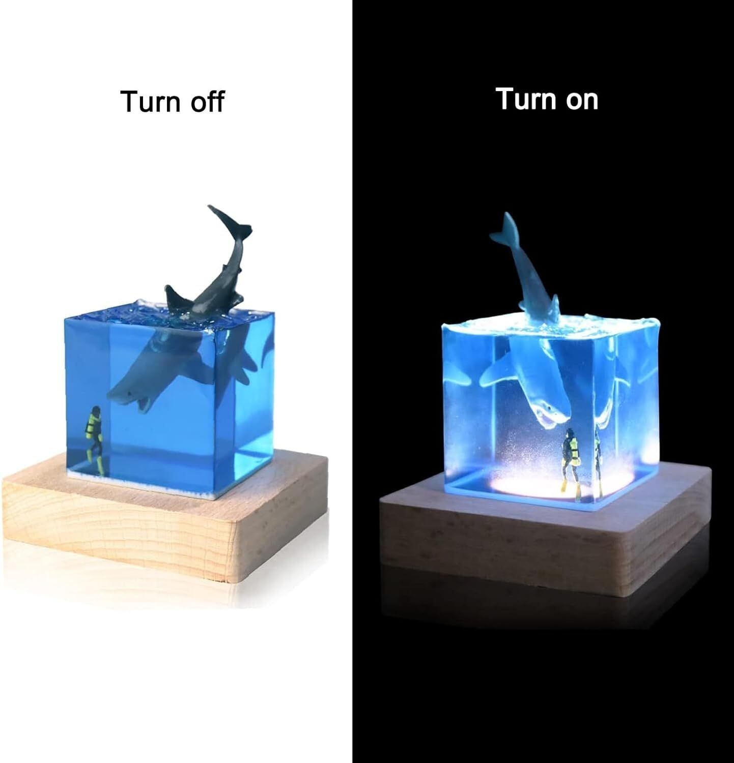 ミニ ナイトライト LED ランプ ライト 照明 USBケーブル付き台 セット シャチ エポキシ樹脂 コンセント スイッチ ON/OFF 青い 光 海 ダイバー かわいい オブジェ ベッドサイド ランプ 寝室 枕元 子供部屋 プレゼント