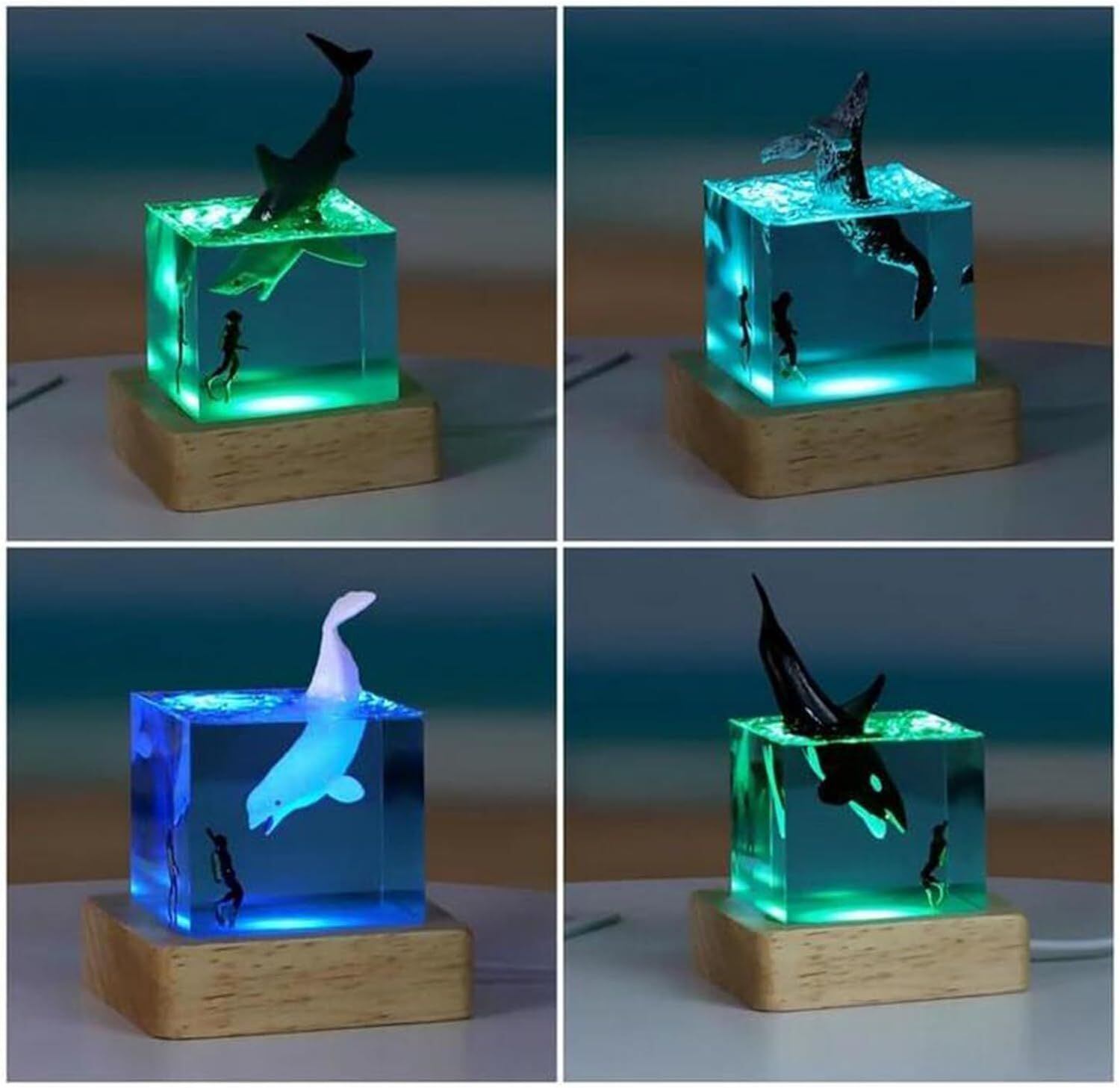 ミニ ナイトライト LED ランプ ライト 照明 USBケーブル付き台 セット サメ エポキシ樹脂 コンセント スイッチ ON/OFF 青い 光 海 ダイバー かわいい オブジェ ベッドサイド ランプ 寝室 枕元 子供部屋 プレゼント