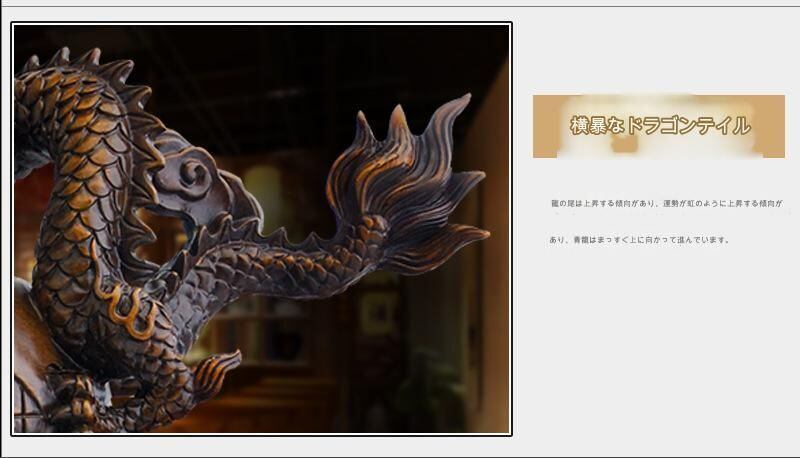 合成樹脂製ですが、手の込んだ工芸品で、色合い、質感が木のような迫力満点の風水龍です