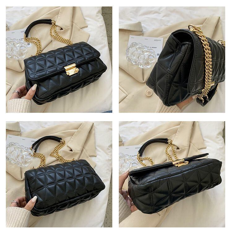 キルト地 2WAY ショルダーバッグ 黒 ブラック ゴールドチェーン カバン 手さげ 小さめ ダイヤ柄 バッグ ハンドバッグ 通勤 結婚式 お呼ばれ 高級 軽量 鞄 セレモニーバッグ 上品 エレガント