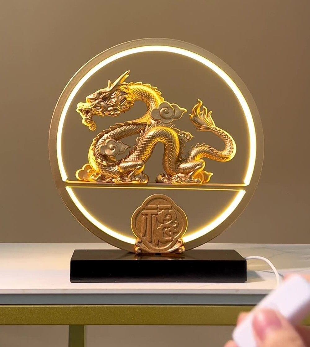 輝く昇龍オブジェは、USB電源でライトアップすることができ、オフィスやリビング、玄関等のアクセントとしても最適です。