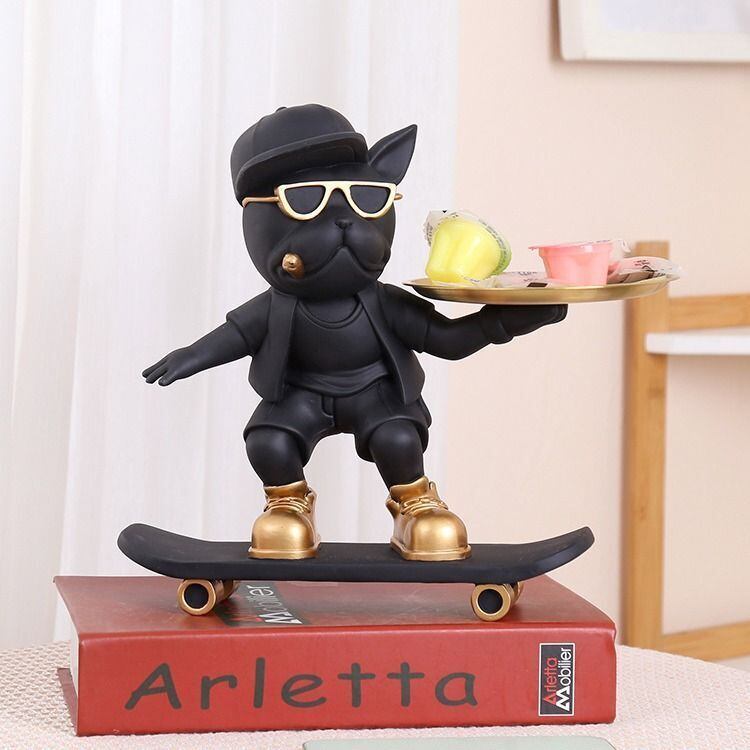 置物 インテリア 犬 ドック ブルドッグ ブラック オブジェ 収納 トレイ 装飾品 スケートボード おしゃれ リビング 棚 テーブル 玄関 動物 雑貨商品