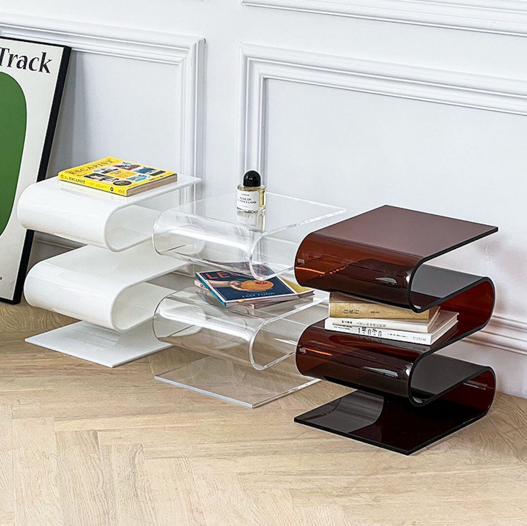 スタイリッシュで便利なラックサイドテーブルが登場!アクリル素材で、インテリアに馴染むおしゃれでシンプルなデザインが特徴です。リビングや寝室でのディスプレイテーブルとして最適で、S字型の本棚付きで収納力も抜群!北欧風のデザインで、お部屋のアクセントになること間違いなし。インテリアをおしゃれに演出したい方にぴったりのアイテムです。