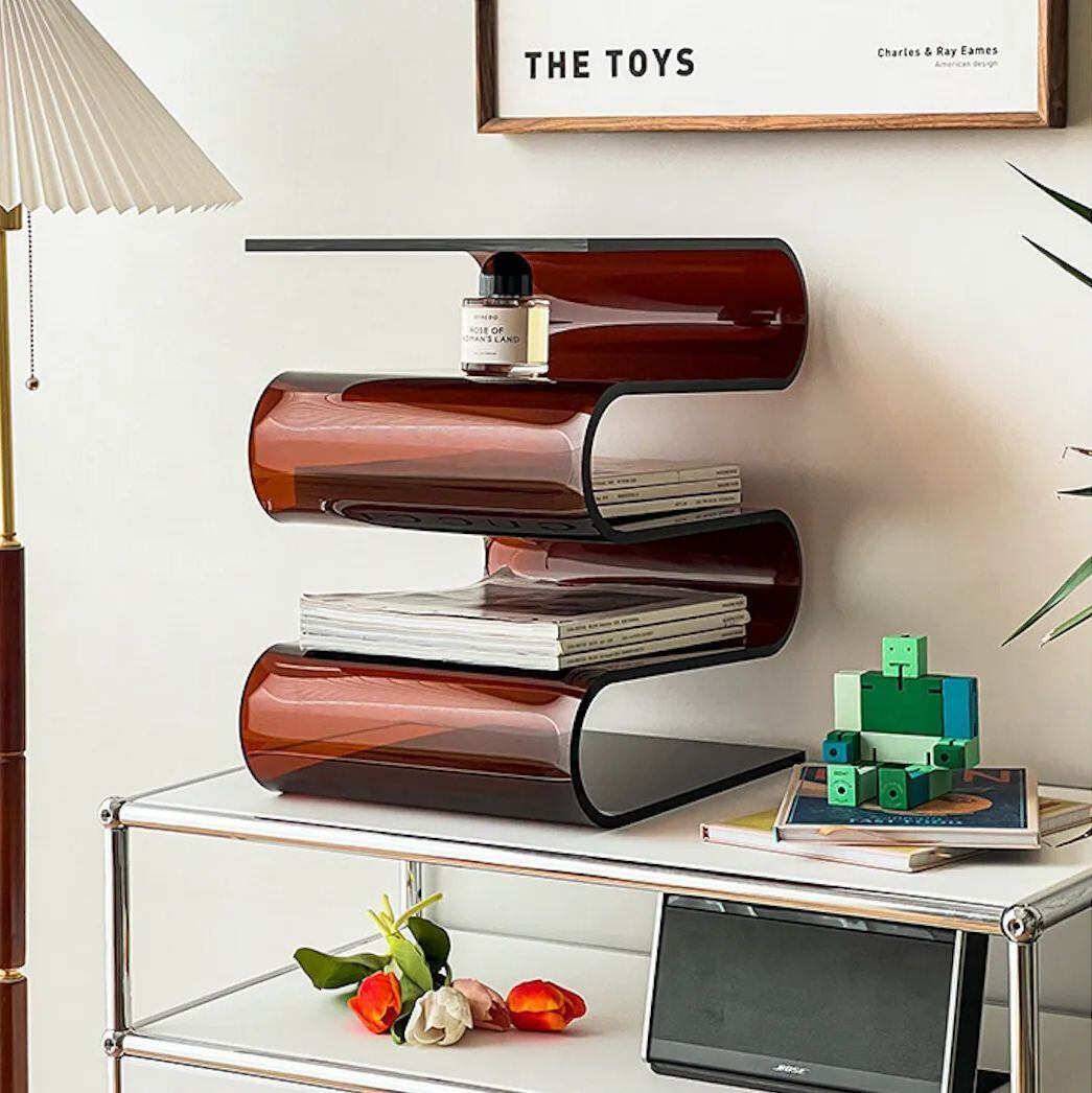 ラック サイドテーブル 本棚 ブラック 黒 インテリア おしゃれ シンプル リビング 寝室 アクリル 収納ラック 北欧 S字型 ディスプレイテーブル
