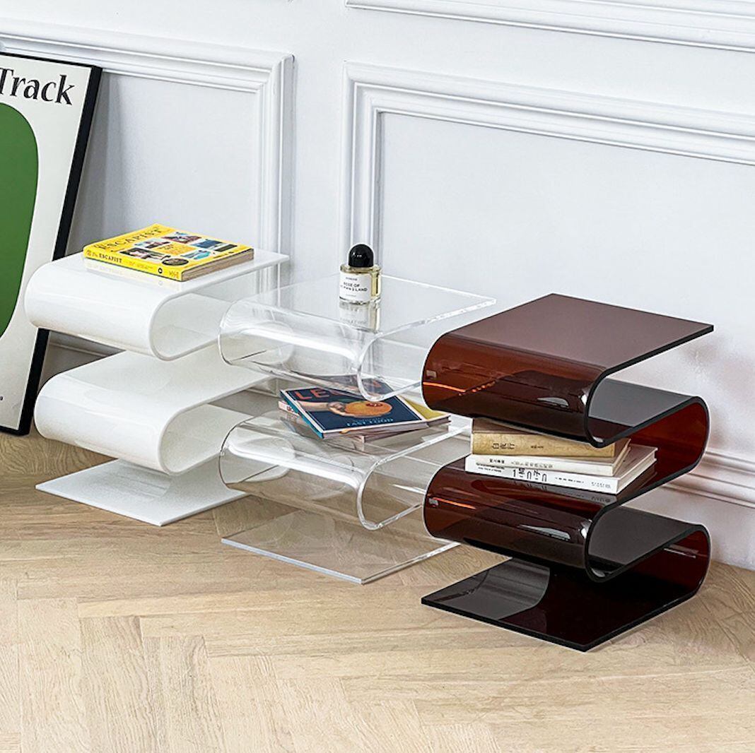 ラック サイドテーブル 本棚 ホワイト 白 インテリア おしゃれ シンプル リビング 寝室 アクリル 収納ラック 北欧 S字型 ディスプレイテーブル