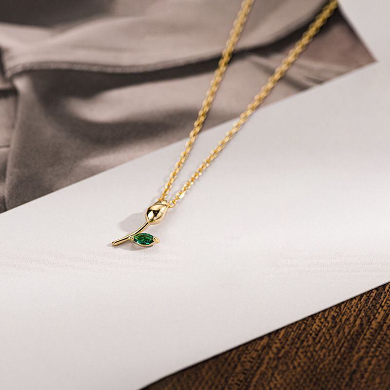 このS925スターリングシルバー製のネックレスは、緑色の小さめストーンがとても可愛らしいアクセサリーです。女性らしさを引き立てるデザインで、シンプルながらも華やかさを演出します。ゴールドメッキのチェーンが上品な輝きを与え、パーティやデートなどの特別な日にも最適です。