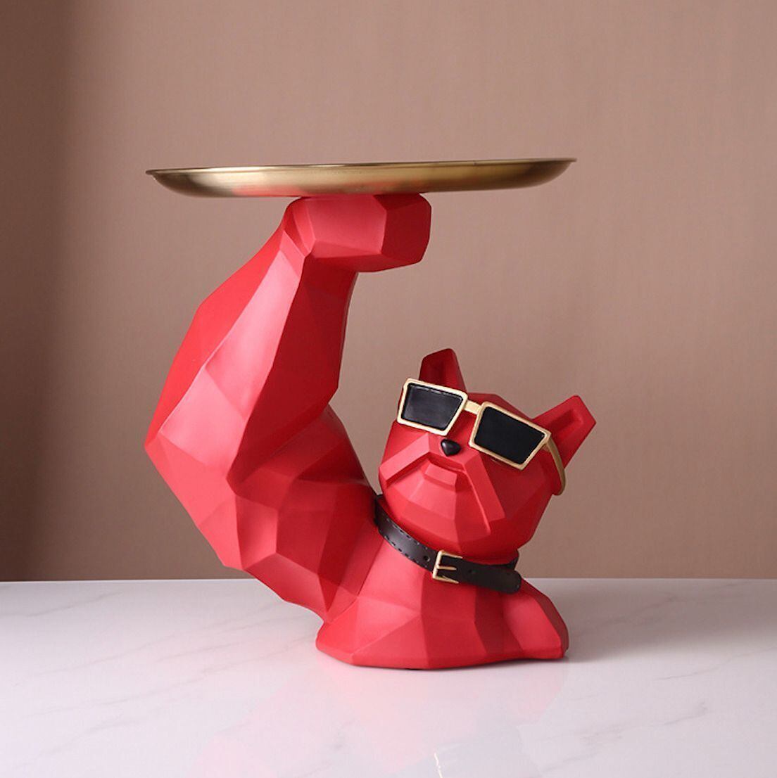 置物 フレンチブルドッグ 収納 トレイ フィギュア 紅色 玄関 コテ仕上げ風 樹脂製 胸像 小物入れ プレート サングラス 卓上 机 オブジェ テーブル デスクトップ 鍵 アクセサリー 雑貨 お菓子 キー かわいい 筋肉 力こぶ ブルドッグ 犬 金