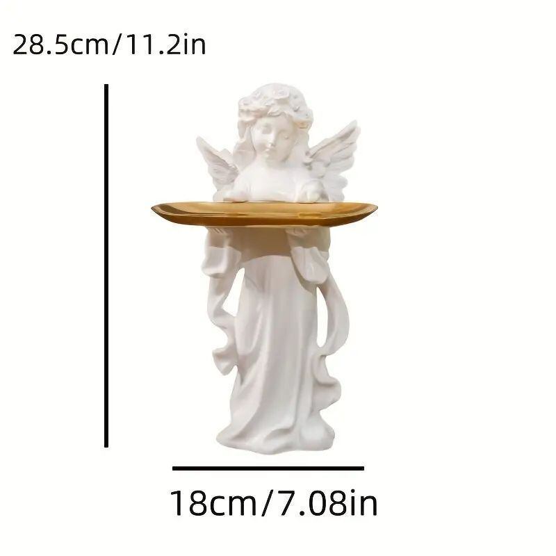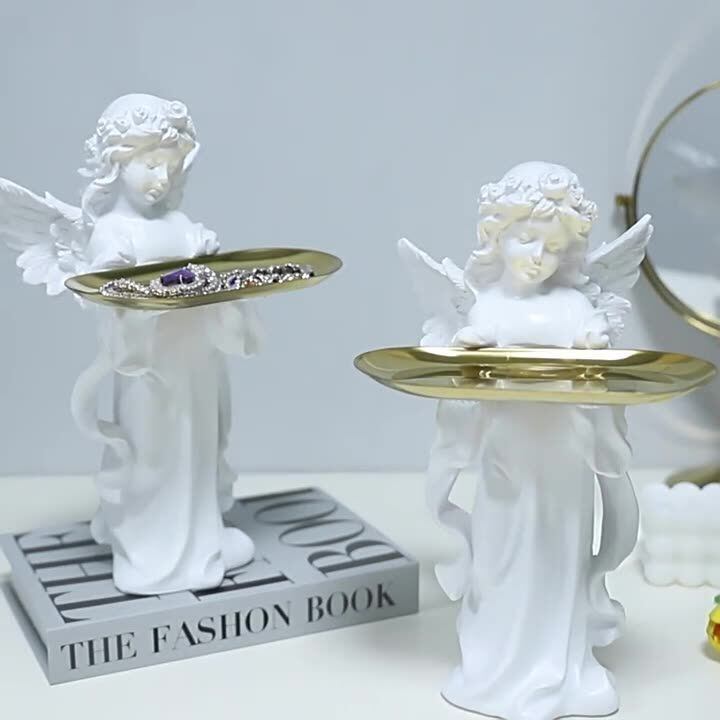 高品質な樹脂製で作られた天使像は、金属トレイと組み合わせたエレガントなデザインにこだわり、芸術的な美しさと実用性を兼ね備えています。