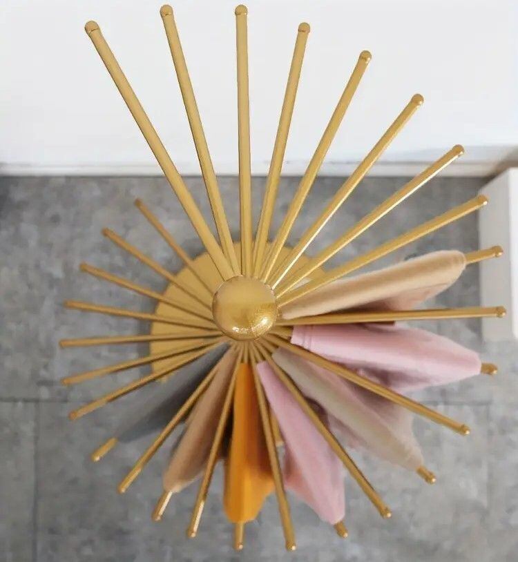 このスパイラルディスプレイラックは、ゴールドのエレガントなデザインが空間を一層華やかにします。