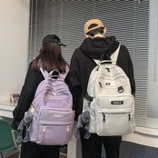 軽やかなナイロン素材で作られた大容量バックパック。学生から旅行やアウトドアまで幅広いシーンで活躍します。かわいらしいぬいぐるみのアクセサリーが付いていて、リュックがオシャレになります。