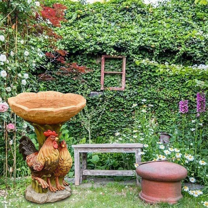 野鳥の餌台 オブジェ ガーデン オーナメント B ニワトリ 樹脂製 手作り 置物 小鳥 エサ 箱 水場 ガーデニング 庭 木陰 屋外 かわいい 自然 調和 餌付け ひまわり 種 癒し 鳥 鳴き声 にわとり 鶏