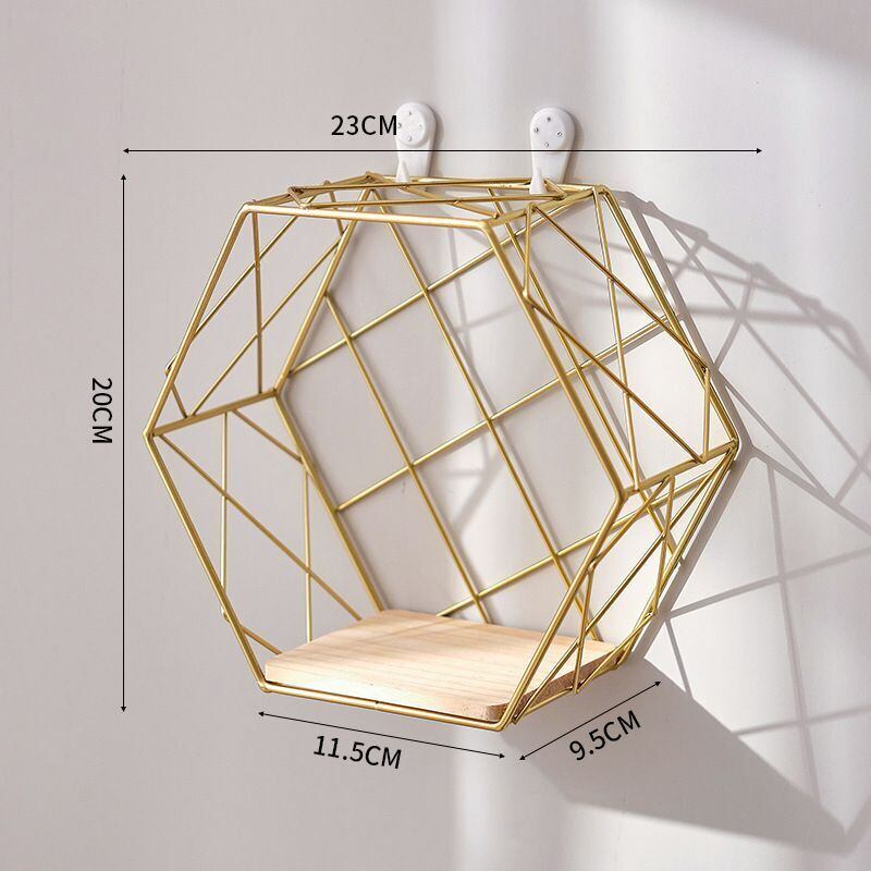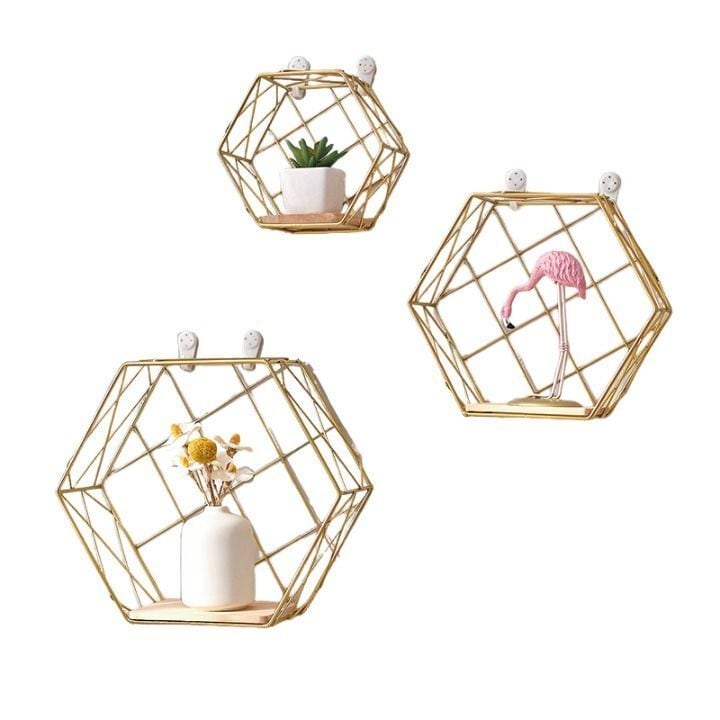 壁掛けラック 3点セット 金 ゴールド シェルフ コンテンポラリー おしゃれ モダン ベッドルーム リビング インテリア ウォールシェルフ 棚 オープンシェルフ 北欧風 六角形
