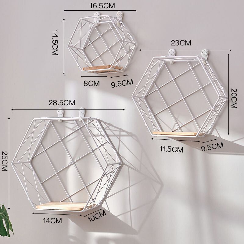 壁掛けラック 3点セット 白 ホワイト シェルフ コンテンポラリー おしゃれ モダン ベッドルーム リビング インテリア ウォールシェルフ 棚 オープンシェルフ 北欧風 六角形