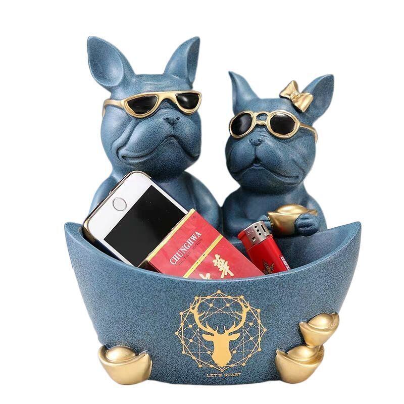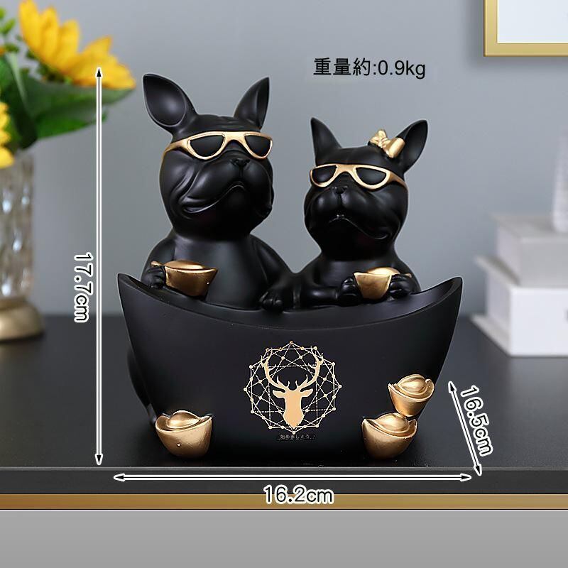 小物入れ サングラスをかけた ブルドックのカップル 犬 動物 樹脂 レジン カラーバリエーション かわいい 置物 プレゼント ギフト リビング 寝室 キーケース おしゃれ